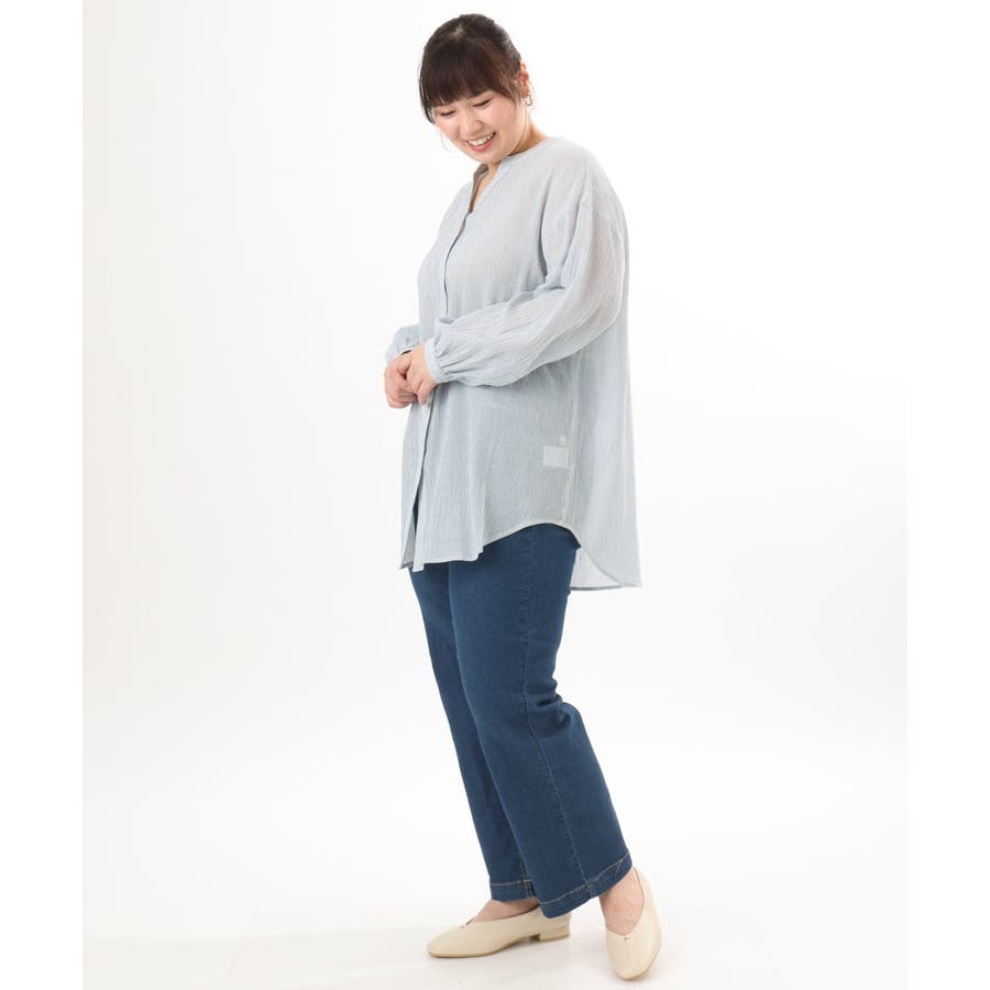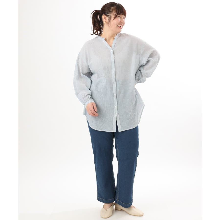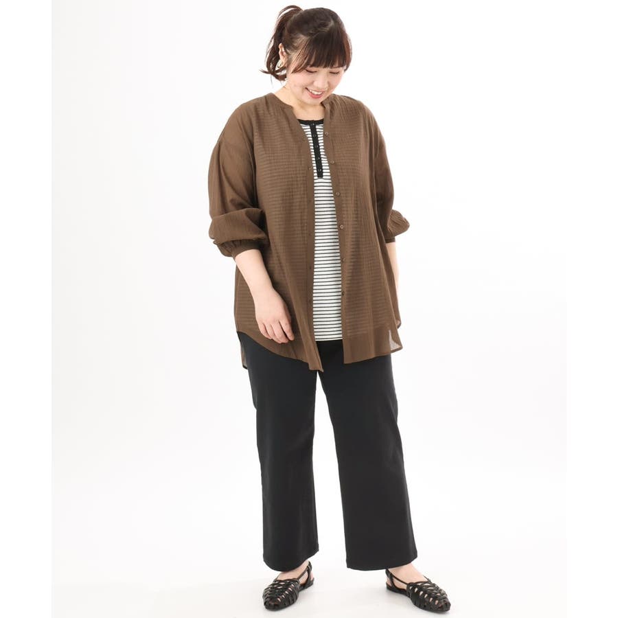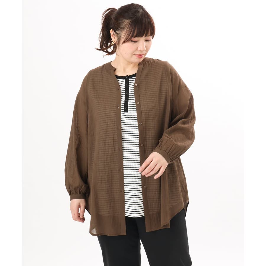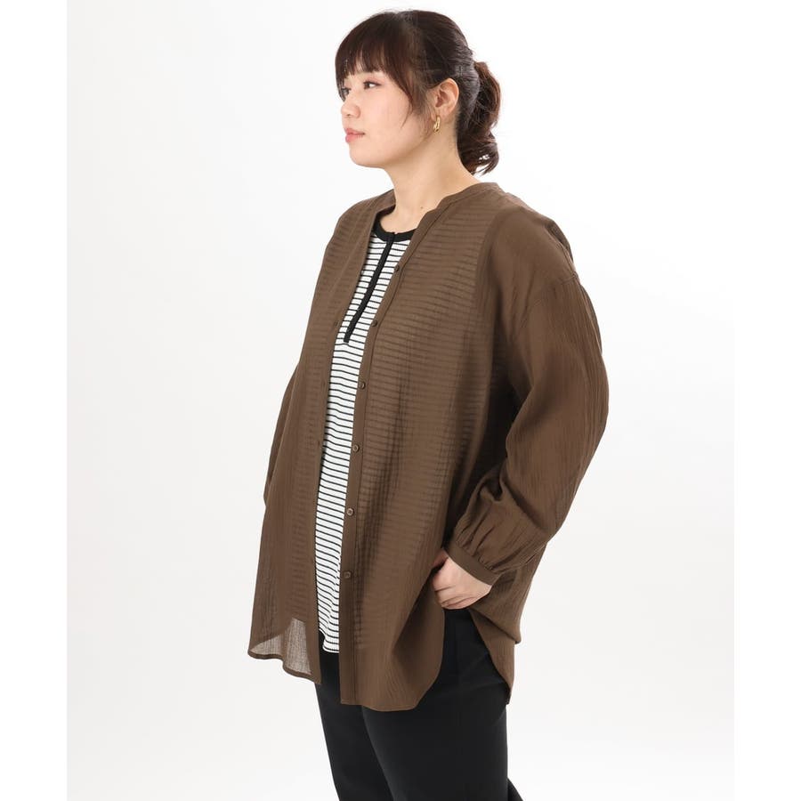 【大きいサイズ】バンドカラーコットンブラウス
