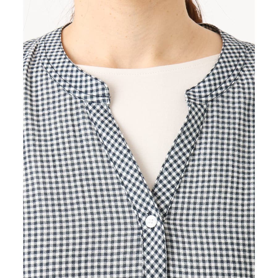 シンプルなデザインながら、抜け感のあるバンドカラーが首元をすっきり。