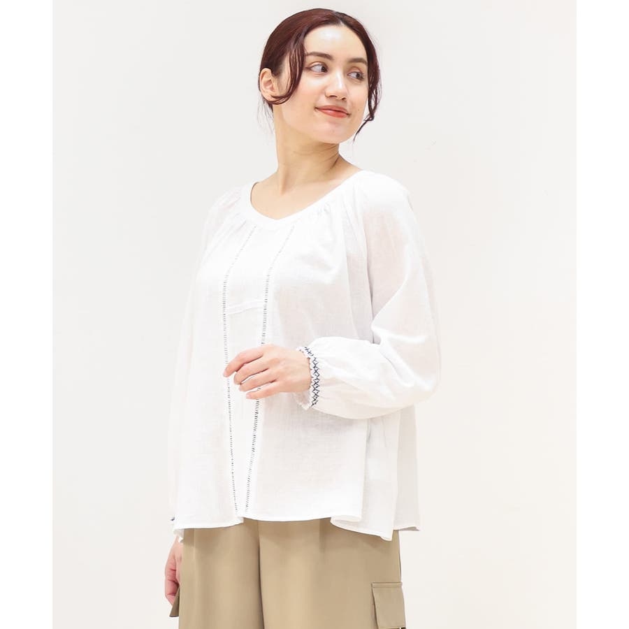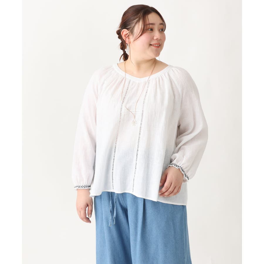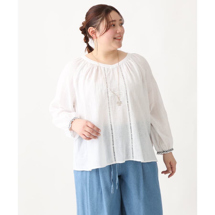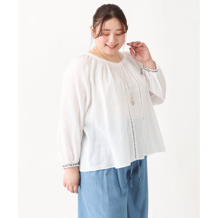 【大きいサイズ】刺繍ハシゴレースブラウス