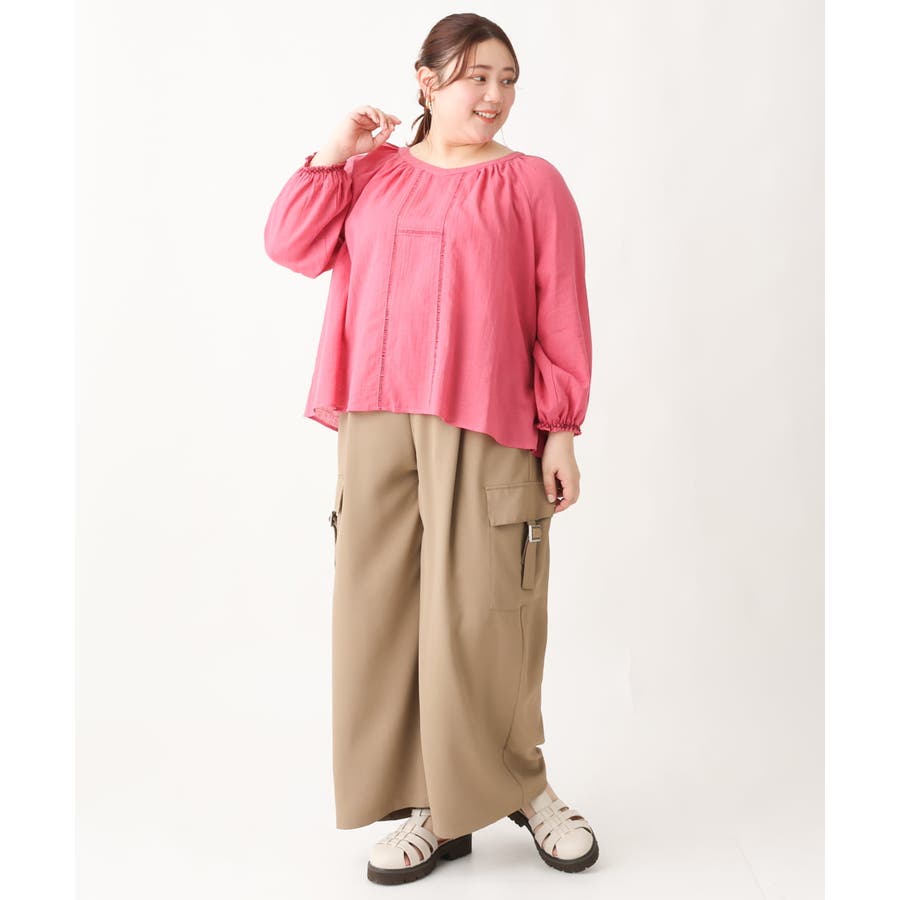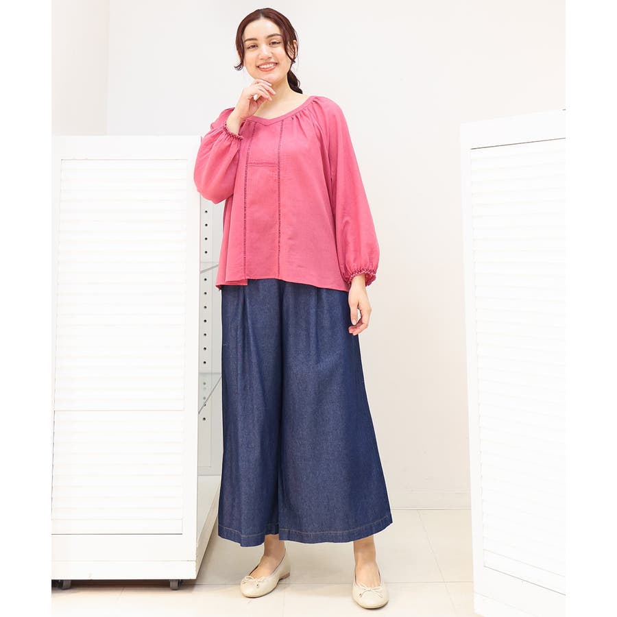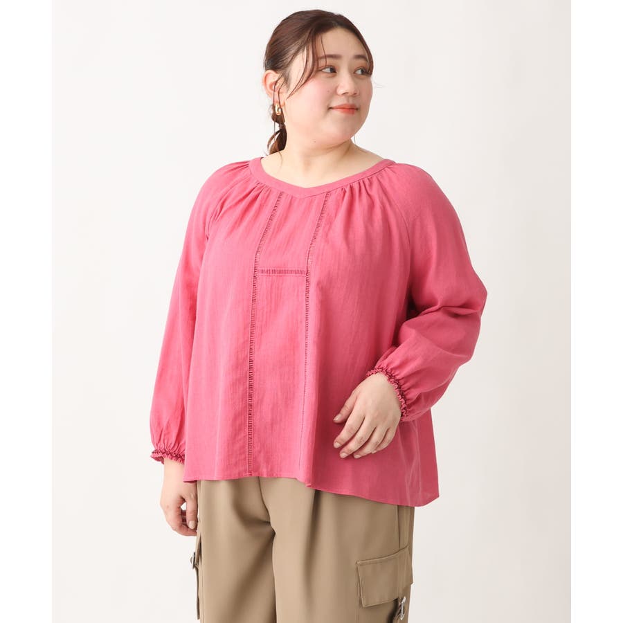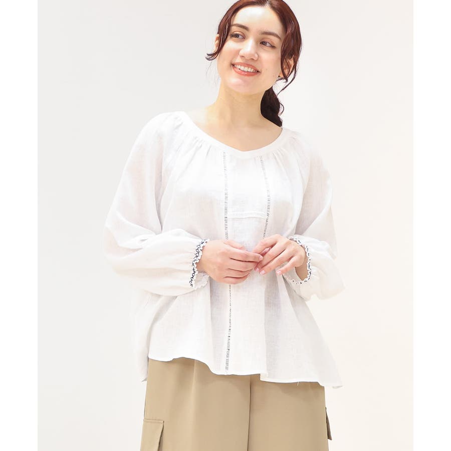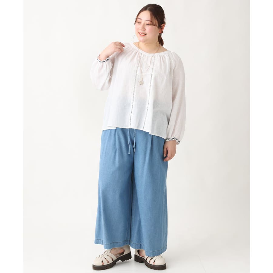 【大きいサイズ】刺繍ハシゴレースブラウス