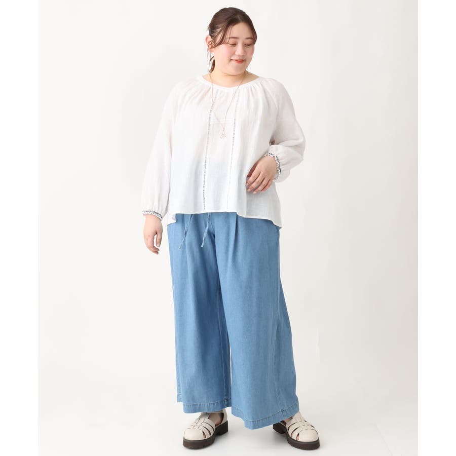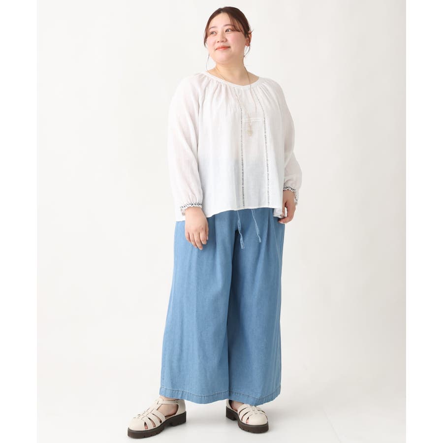 刺繍とハシゴレースでカジュアルスタイルも少し甘めにかわいくスタイリングできます。