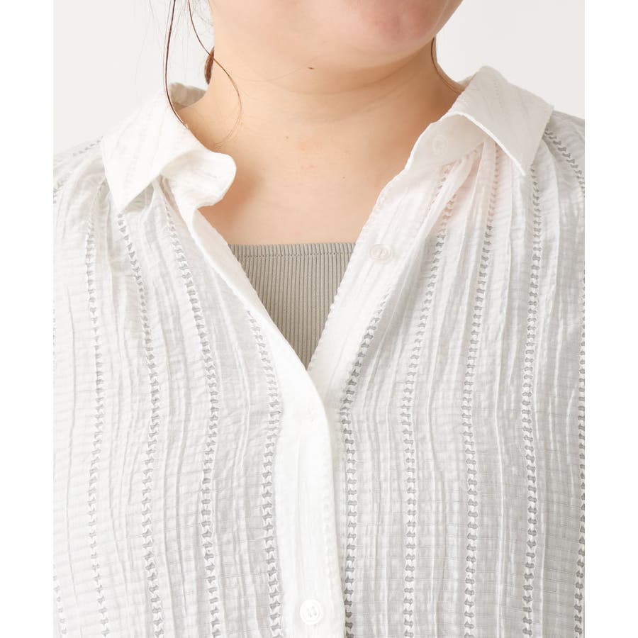 トレンドのシアードビー生地でゆったりシルエットの羽織にもなるシャツタイプデザイン。