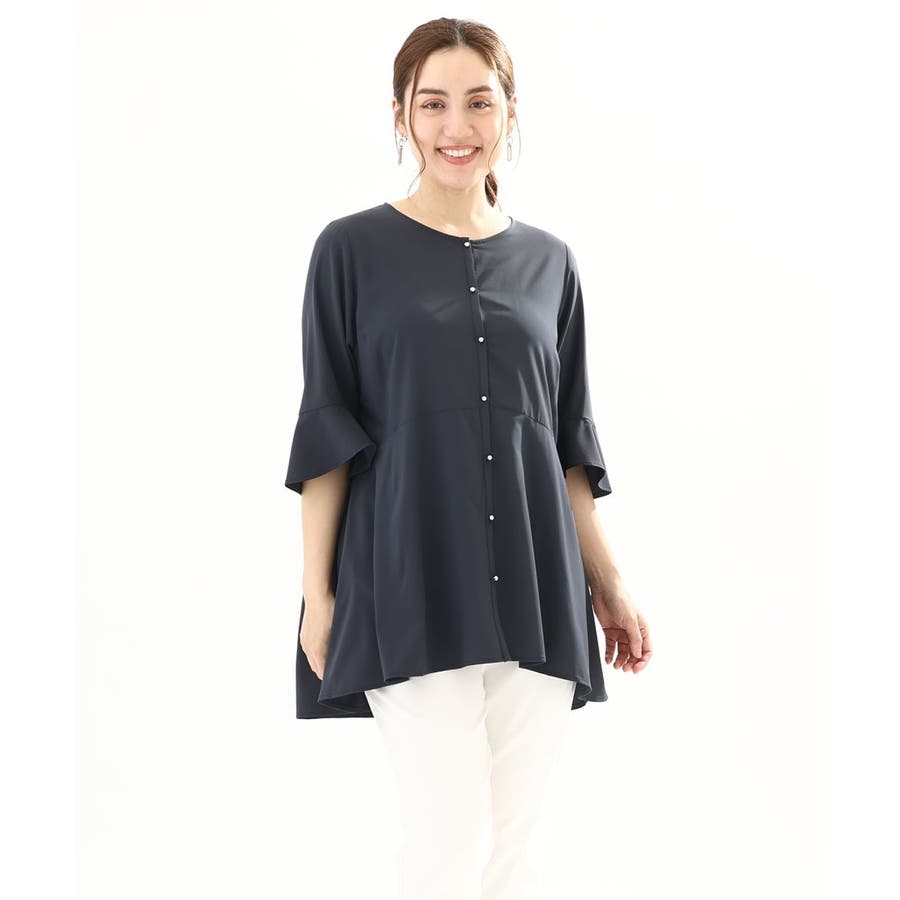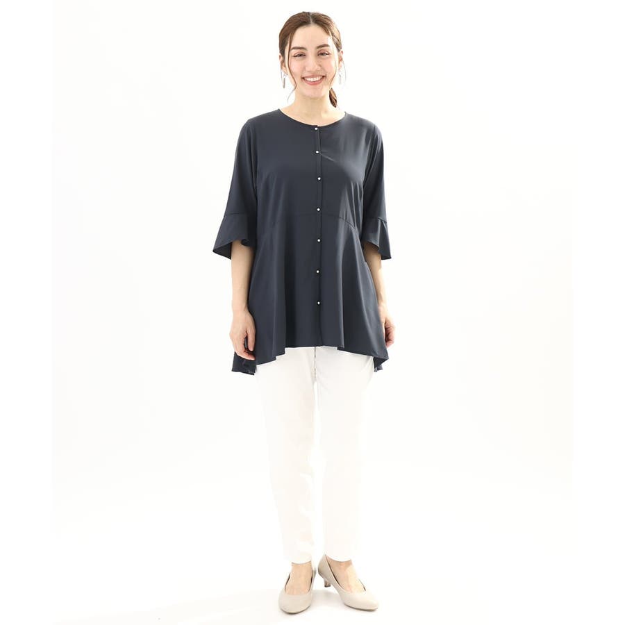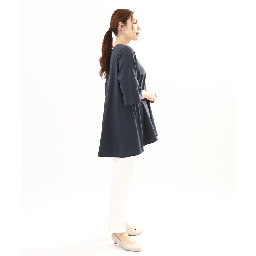 袖口は切り替え緩やかなフレアスリーブで二の腕もカバー。