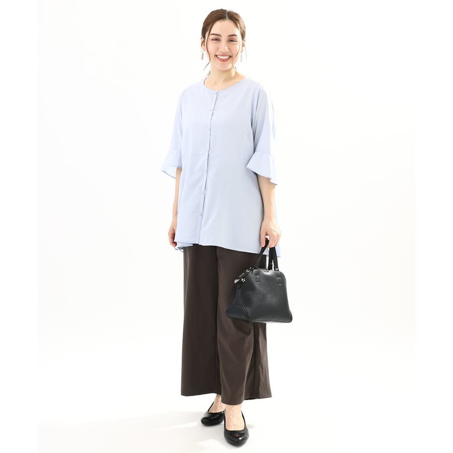 着丈長めなのでパンツを合わせたスタイリングがおすすめ。