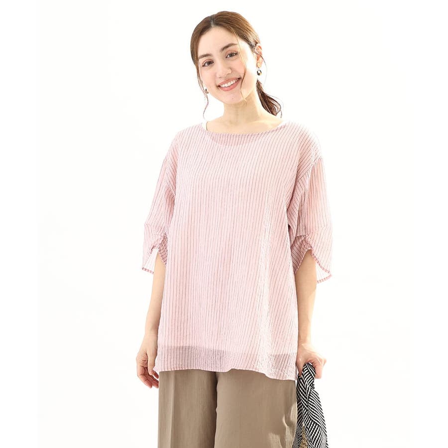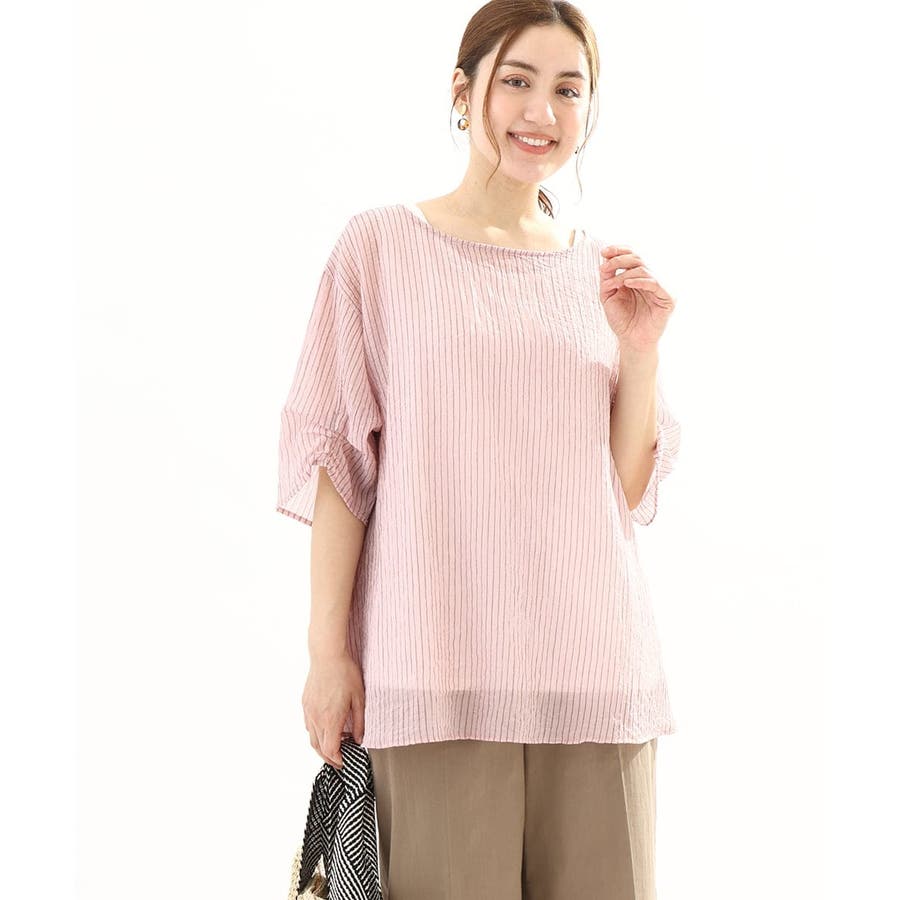 さらっとしたハリ感と透け感のあるストライプ生地を使用しています。