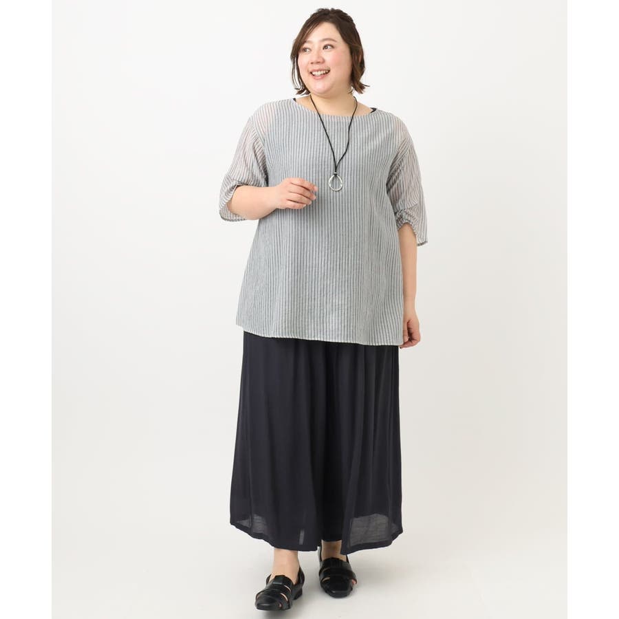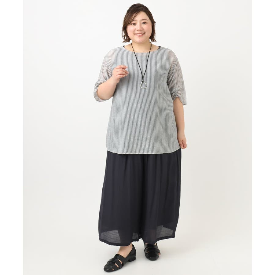 ゆったりシルエットの涼し気なシアーブラウスにタンクトップがセットになっているので簡単にスタイリングが決まります。