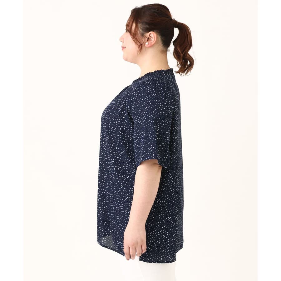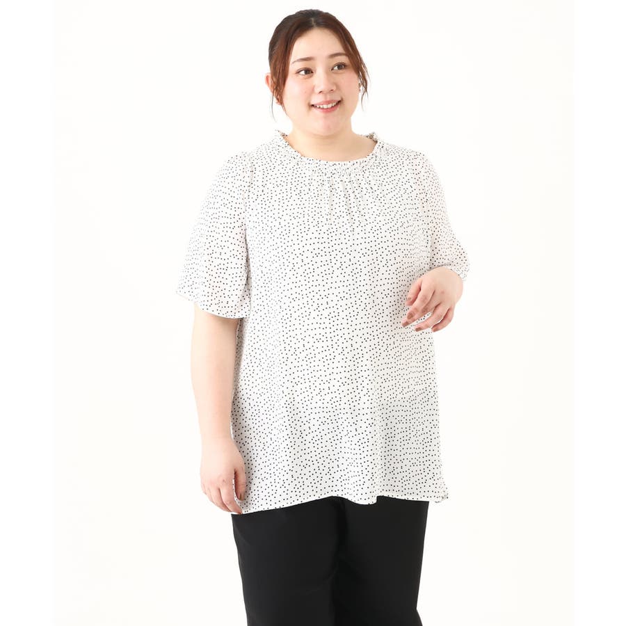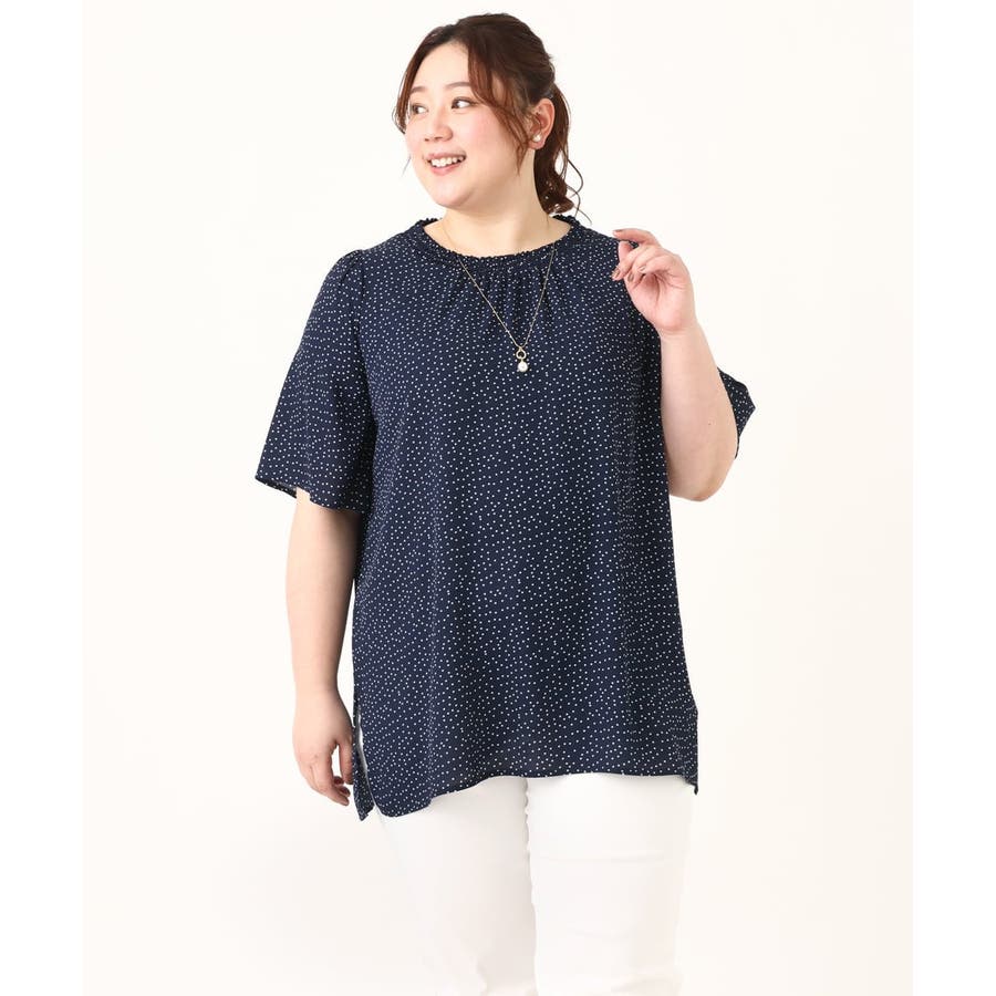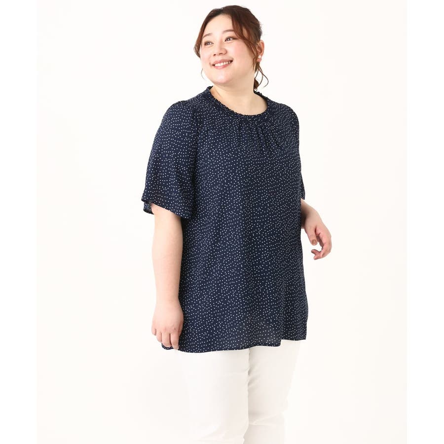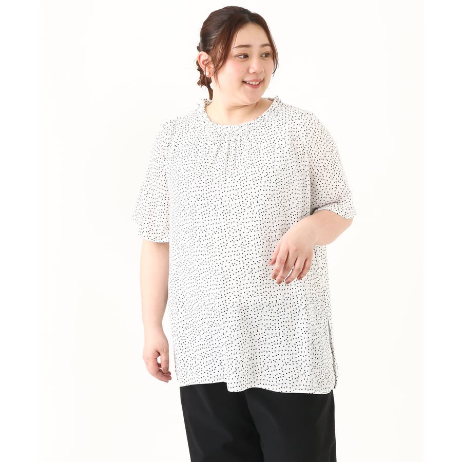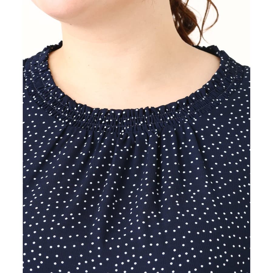 【大きいサイズ/11号サイズあり】シャーリングネックドットブラウス