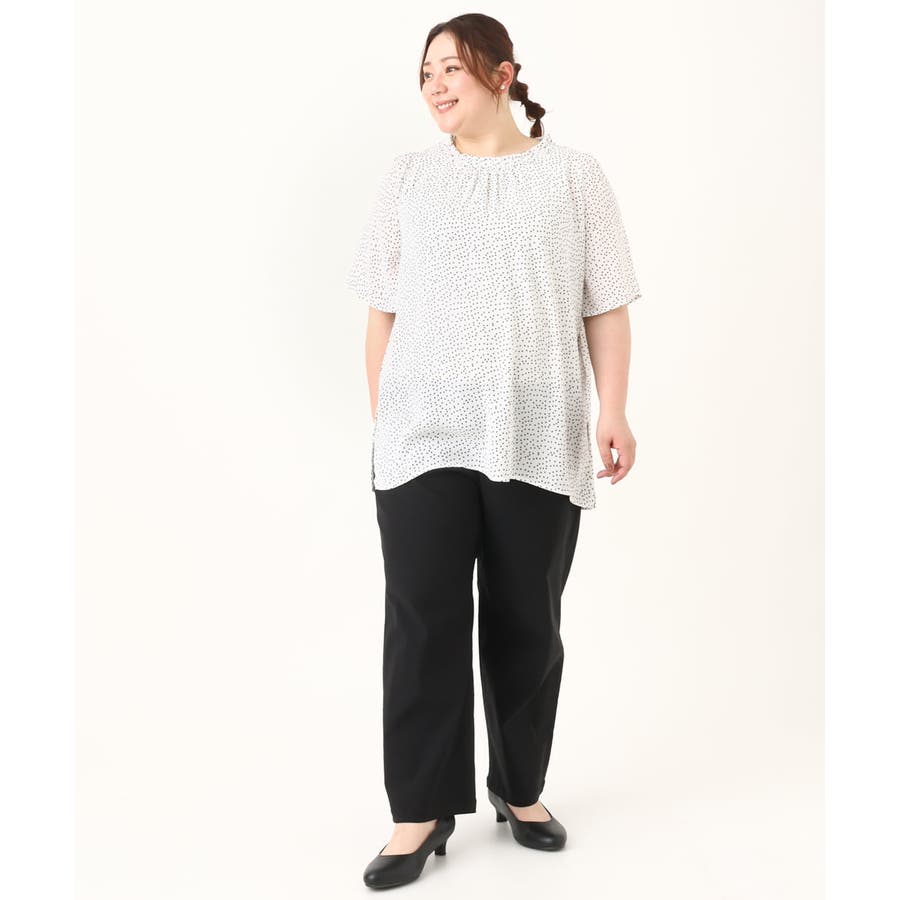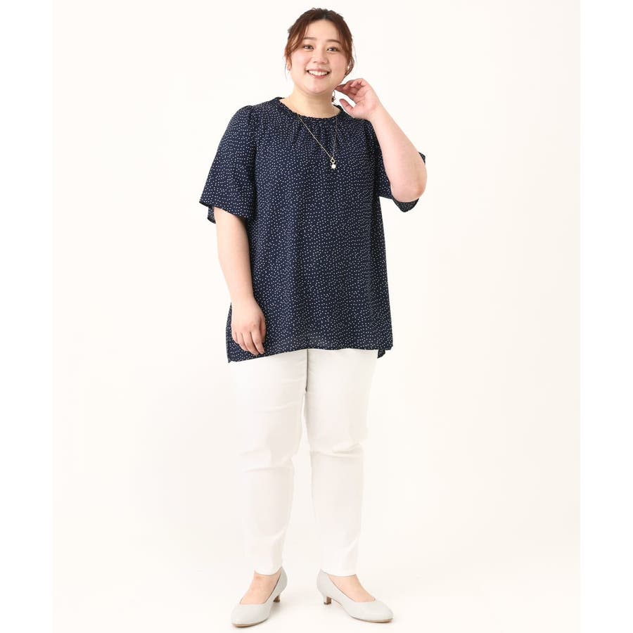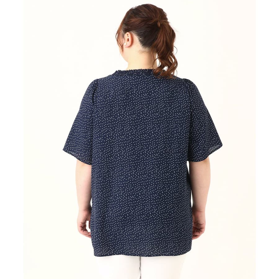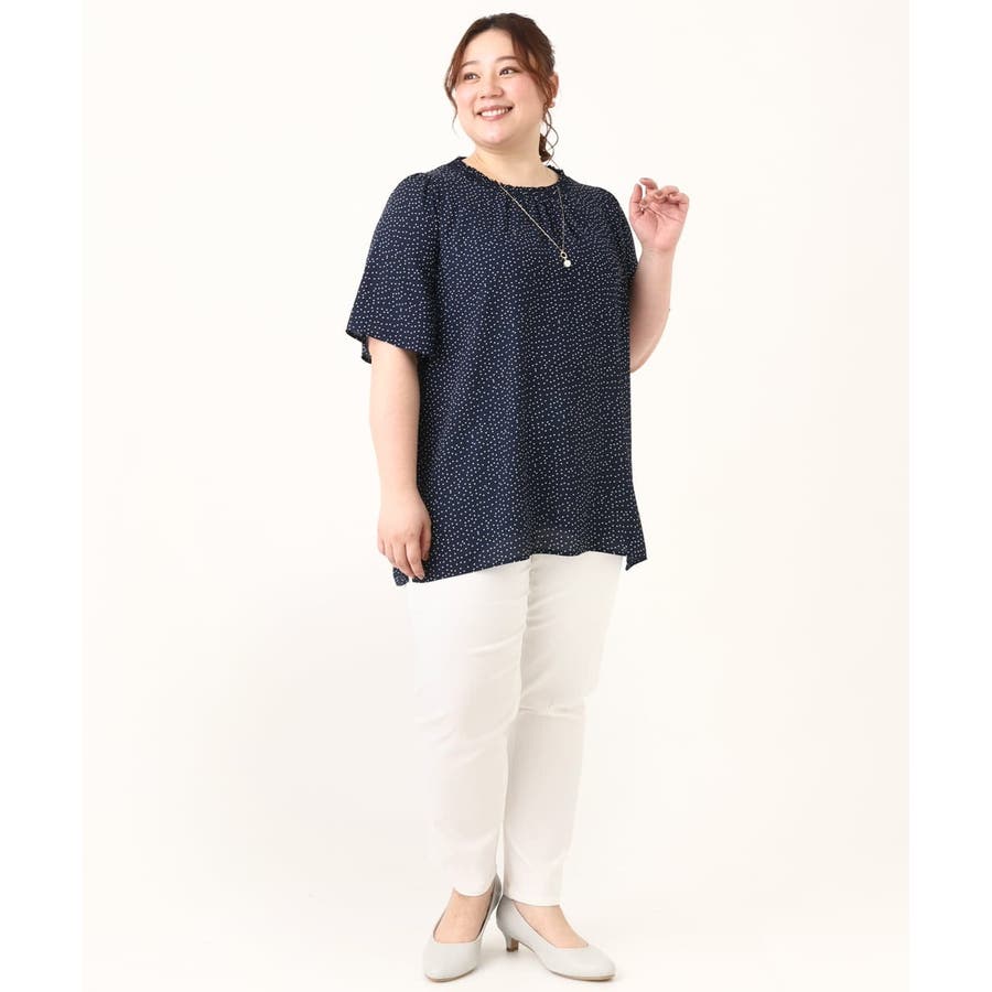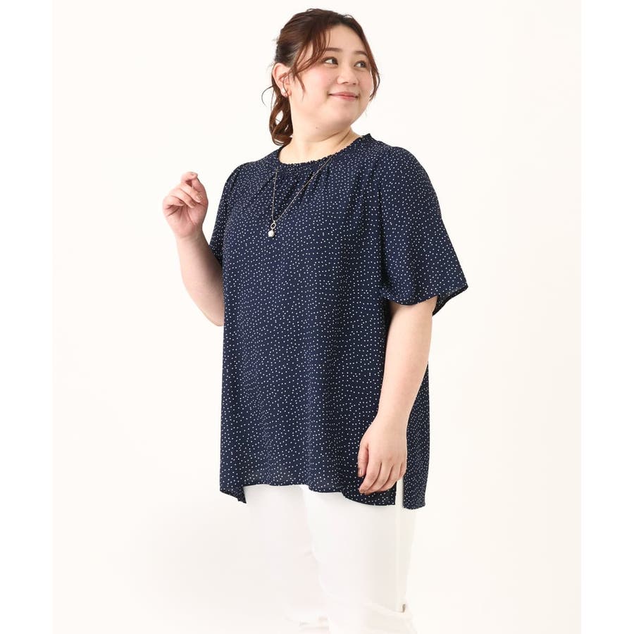 【大きいサイズ/11号サイズあり】シャーリングネックドットブラウス