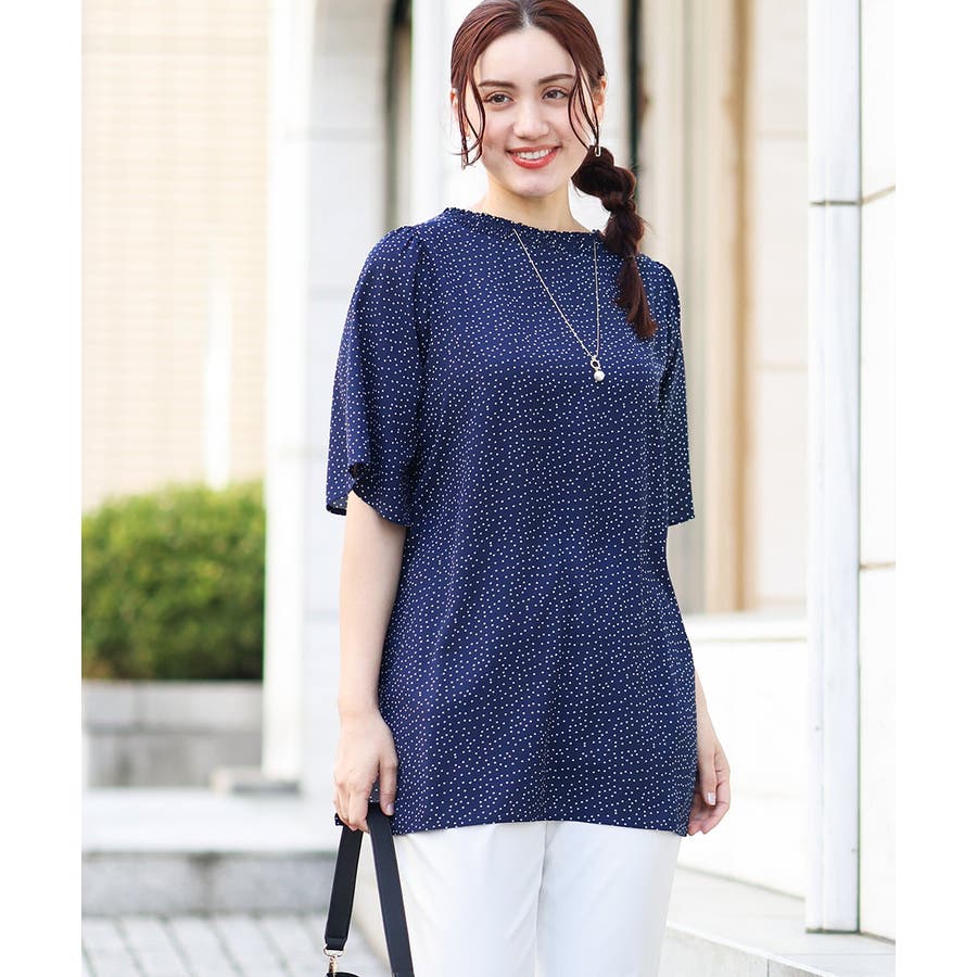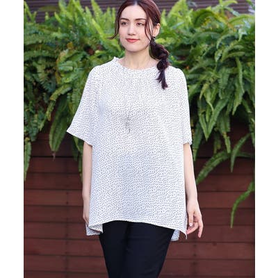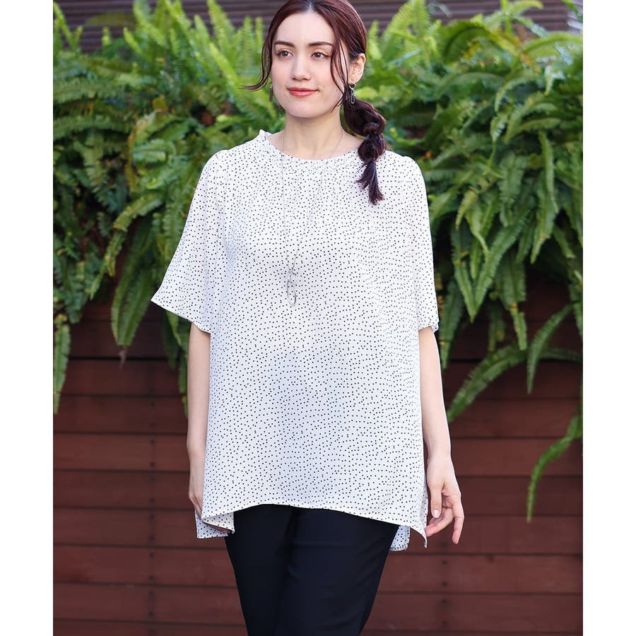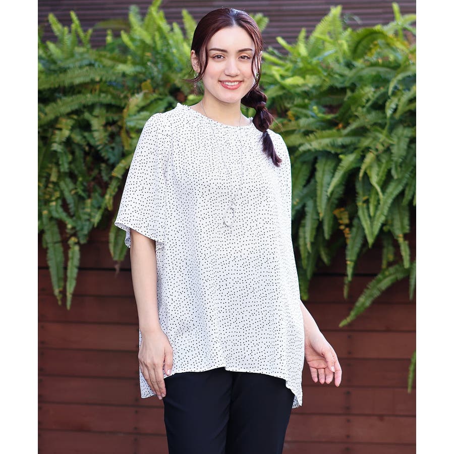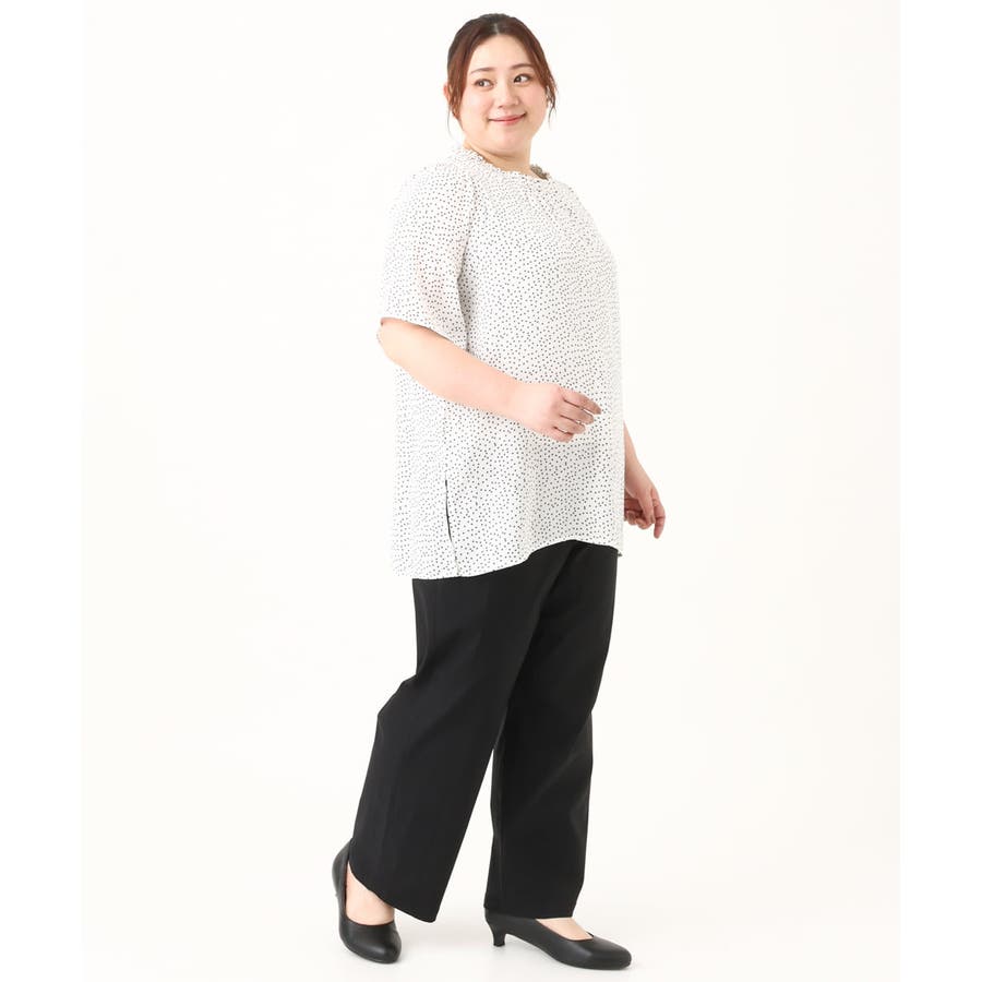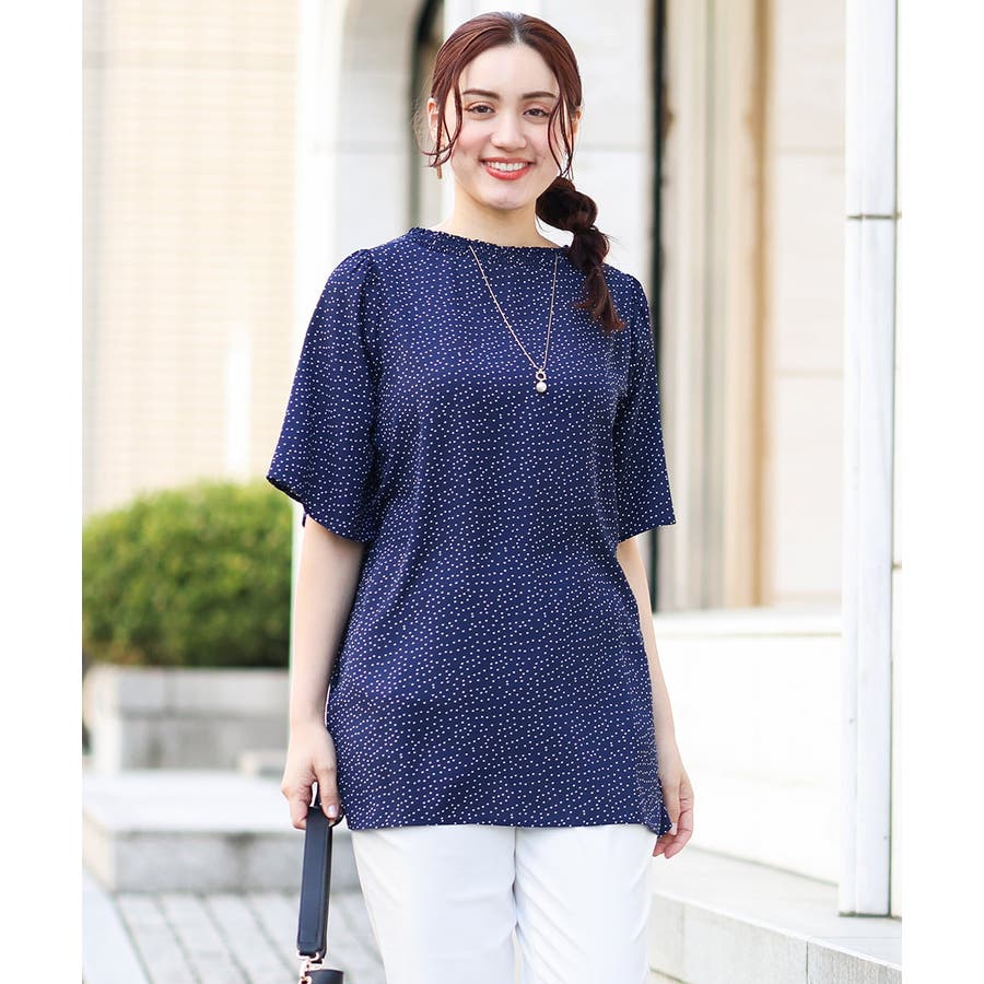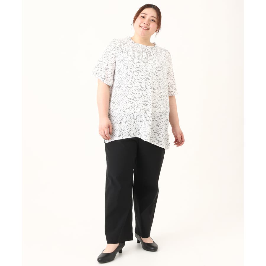 【大きいサイズ/11号サイズあり】シャーリングネックドットブラウス