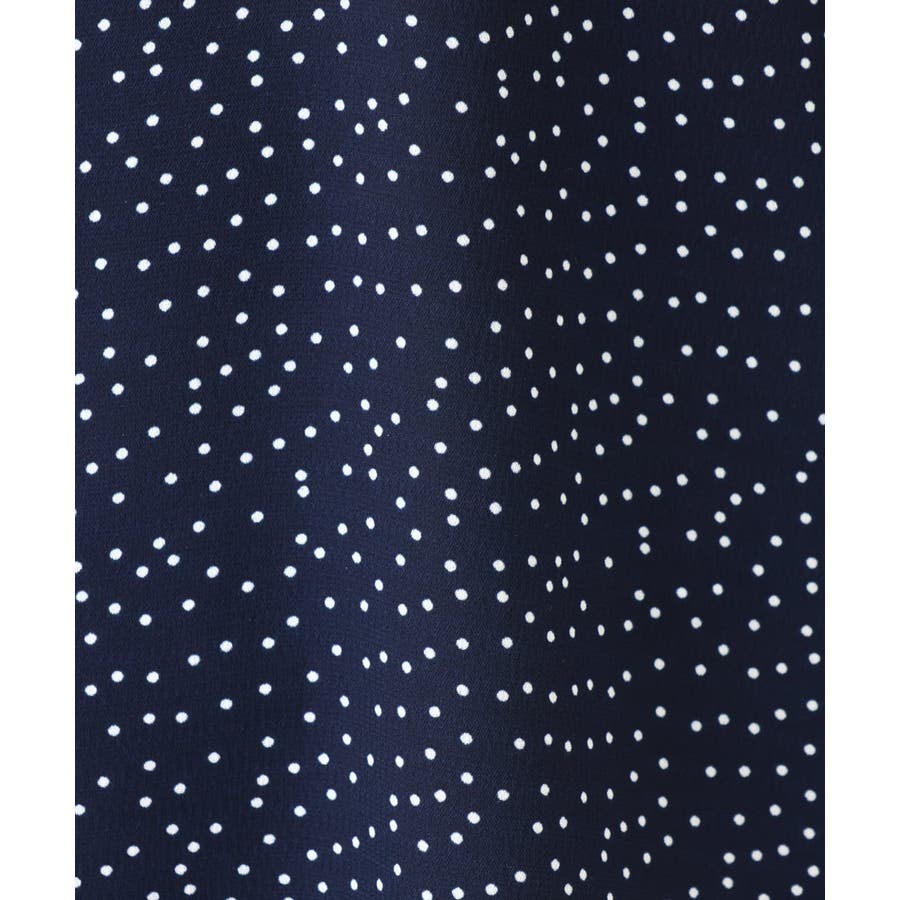 やわらかなポリエステルジョーゼット生地にドットプリントをかけた落ち感のきれいな生地。