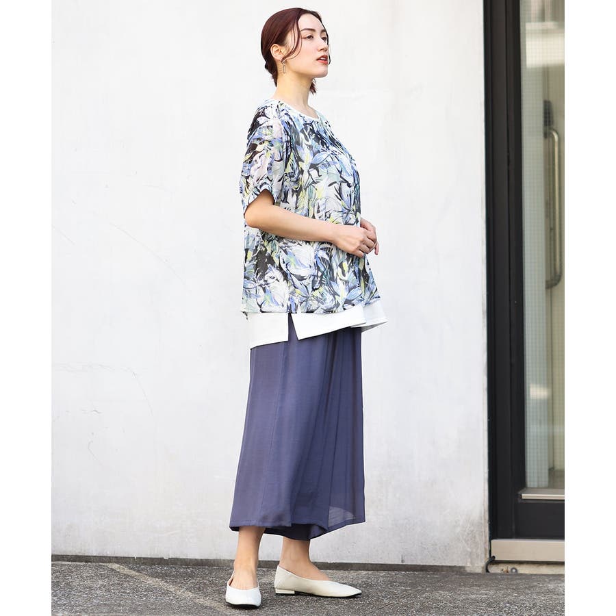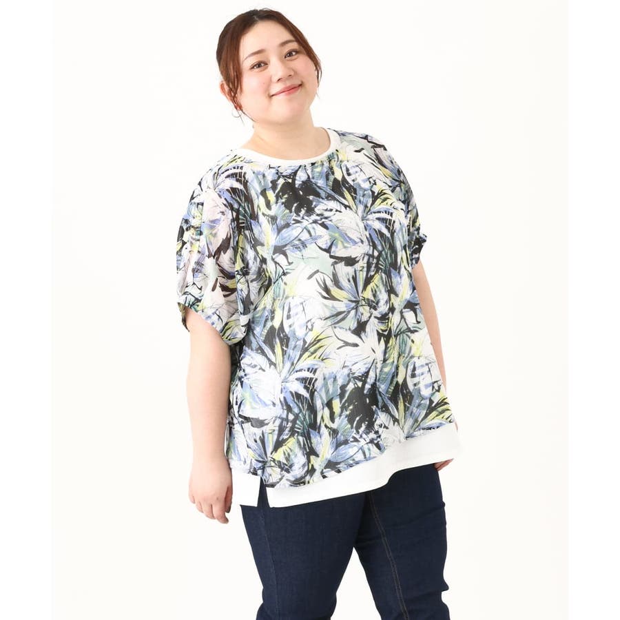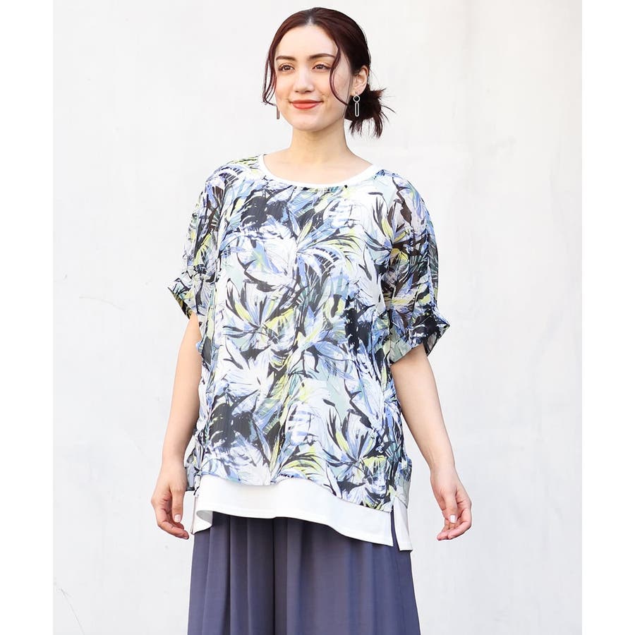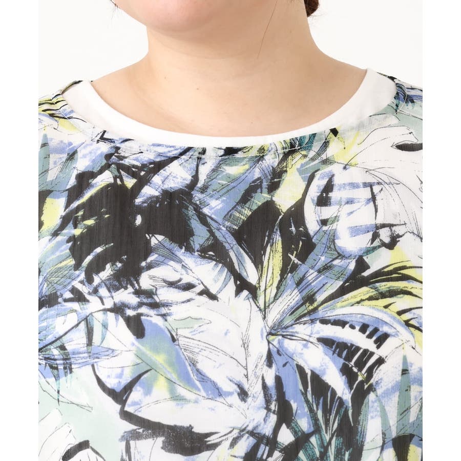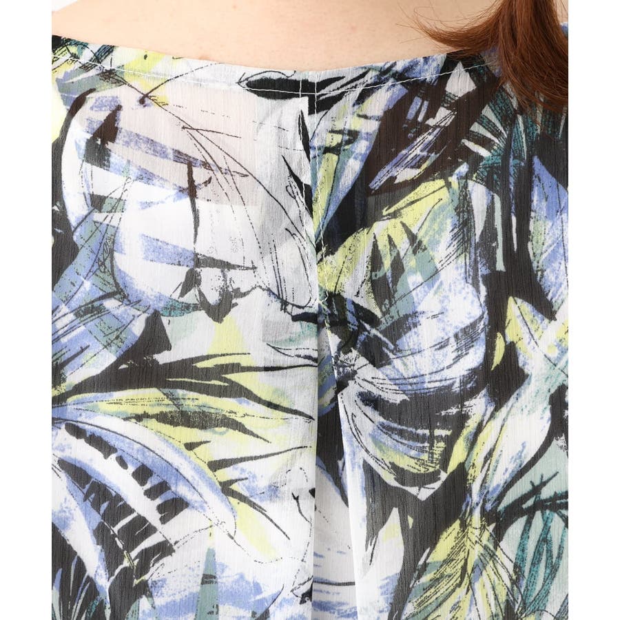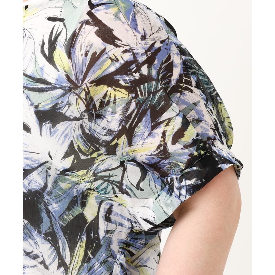 ・ブラウス/表面感あるシフォンにボタニカルプリントをした軽い素材を使用。