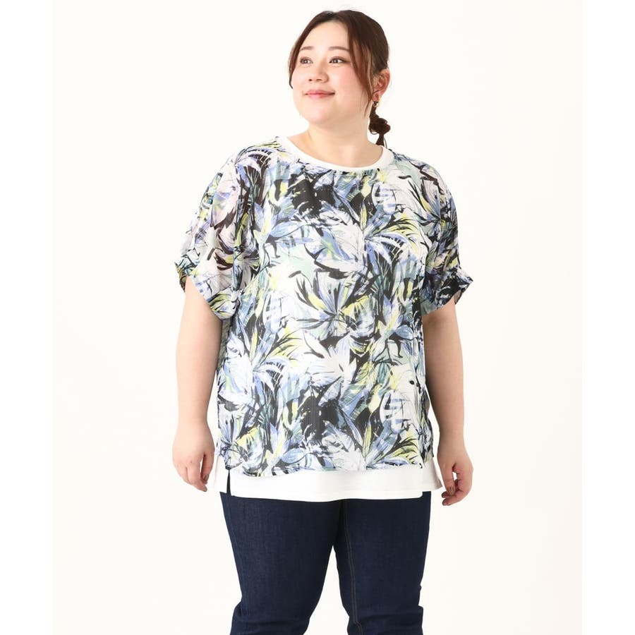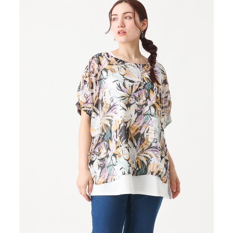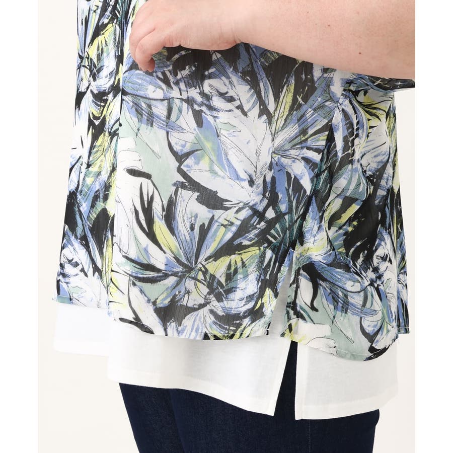 【大きいサイズ】リゾートプリントブラウス+タンクトップセット