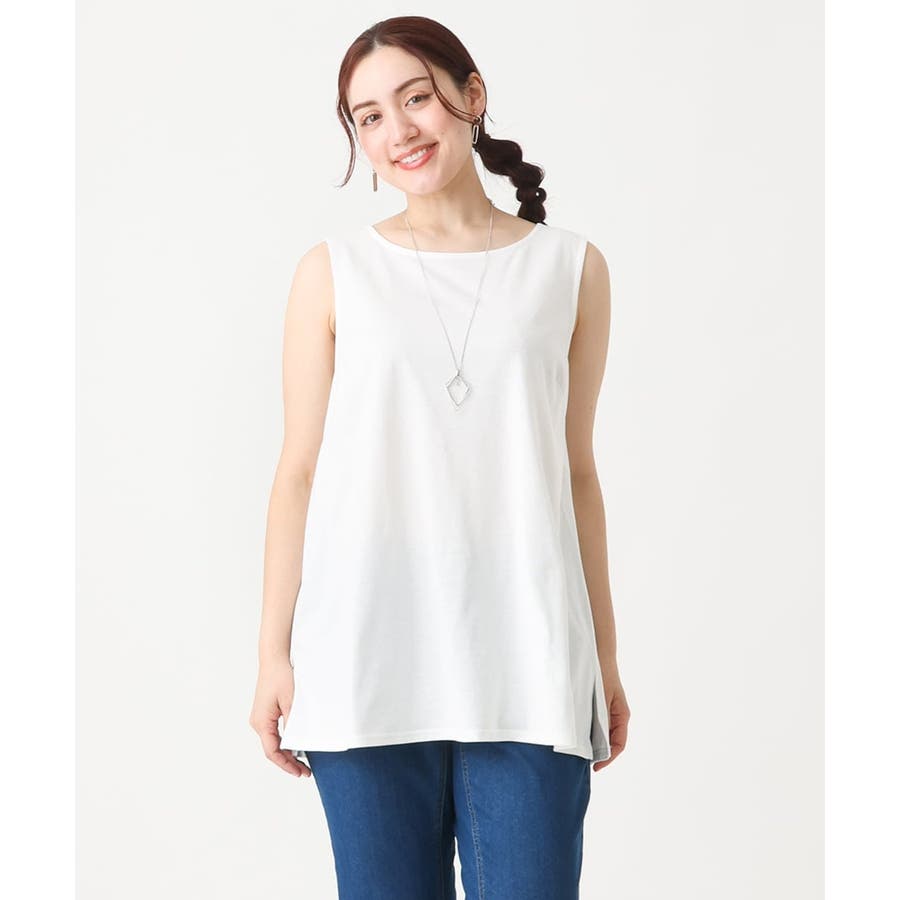 セットのタンクトップはベーシックなクルーネックデザイン。