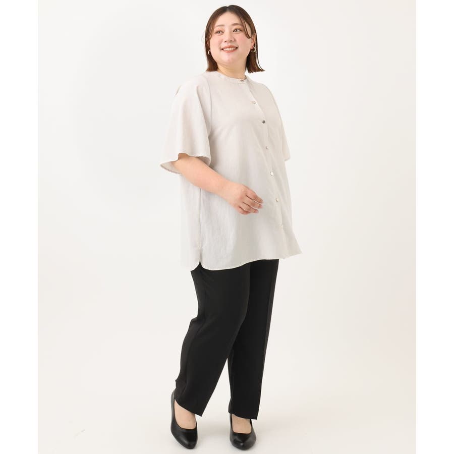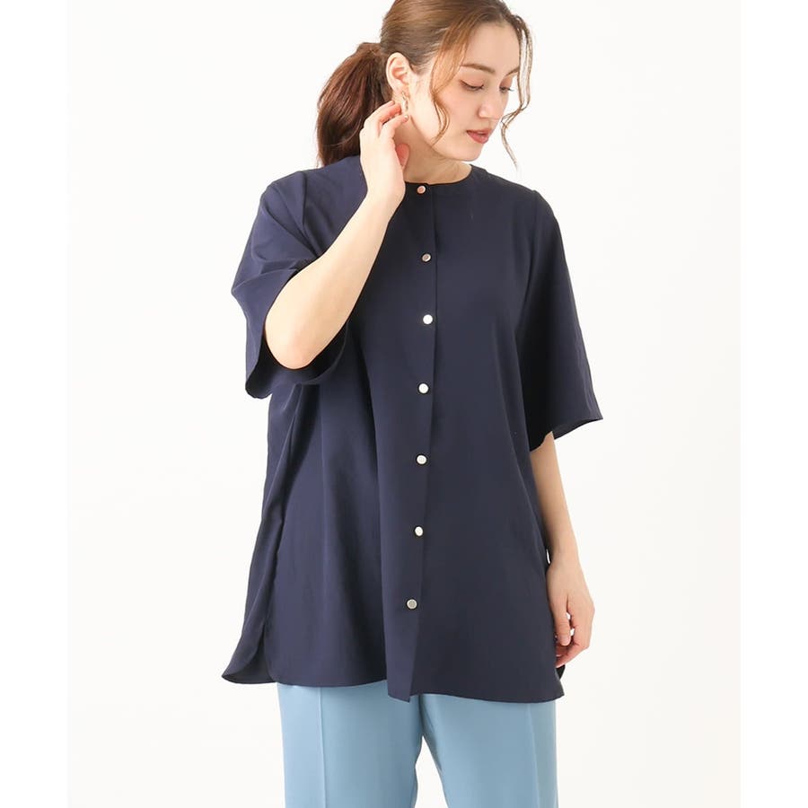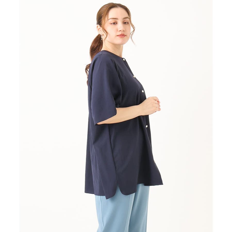 シワが目立たない、イージーケアの楽ちんブラウスは着丈長めでヒップラインまでカバーできるのでスキニーパンツからワイドパンツまで幅広く合わせられます。