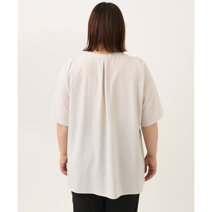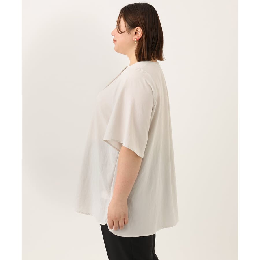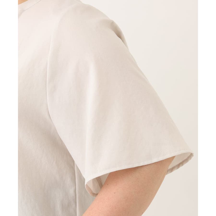 肩回りがすっきり見えるコンパクトな肩線に、ゆったりとした袖付けでAラインの裾から風を通す涼しく着られるデザイン。