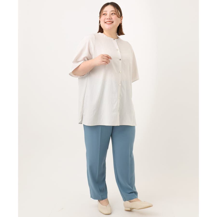 エウルキューブの定番アイテムさらさらテーパードパンツ(OLLFA10089、OLLGA23089)を合わせるだけでデイリーの通勤スタイルが完成します。
