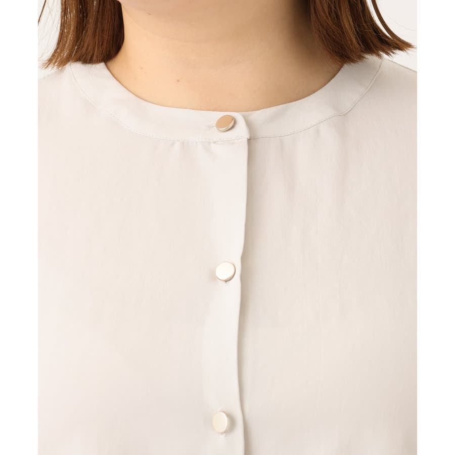 金ボタンでアクセサリーを付けなくても可愛く、通勤シーンにも着られるきれい目ブラウスです。