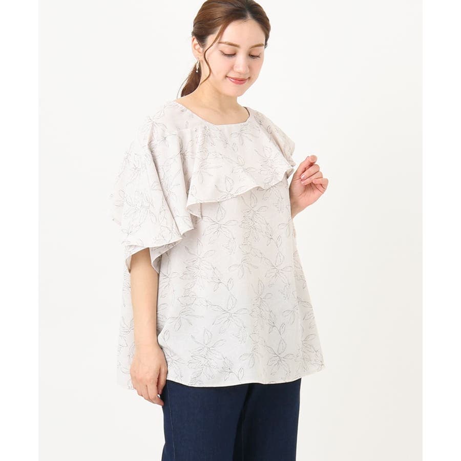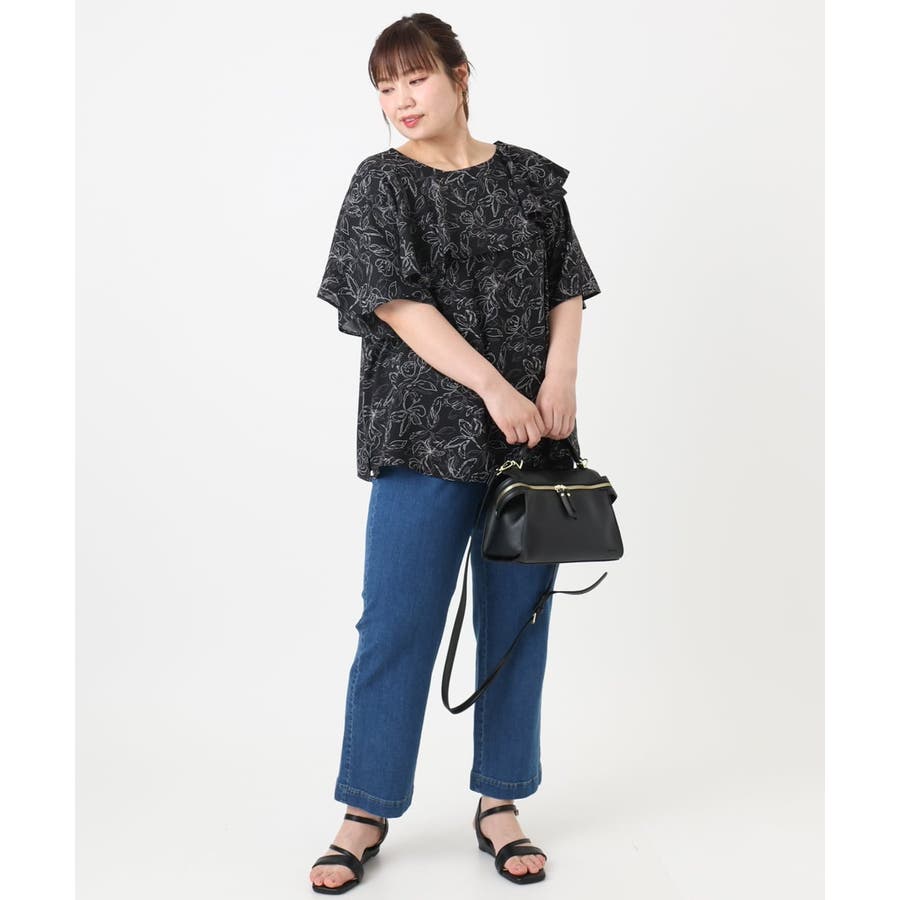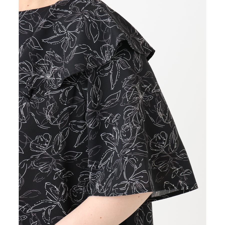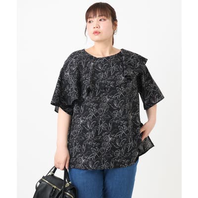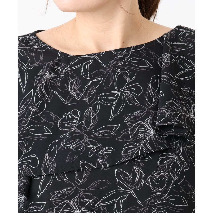【大きいサイズ】フリルカラーフラワープリントブラウス