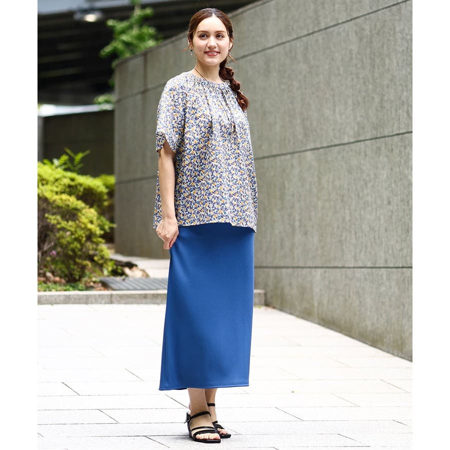 短めの着丈なのでパンツ、スカートどちらでも合わせられます。