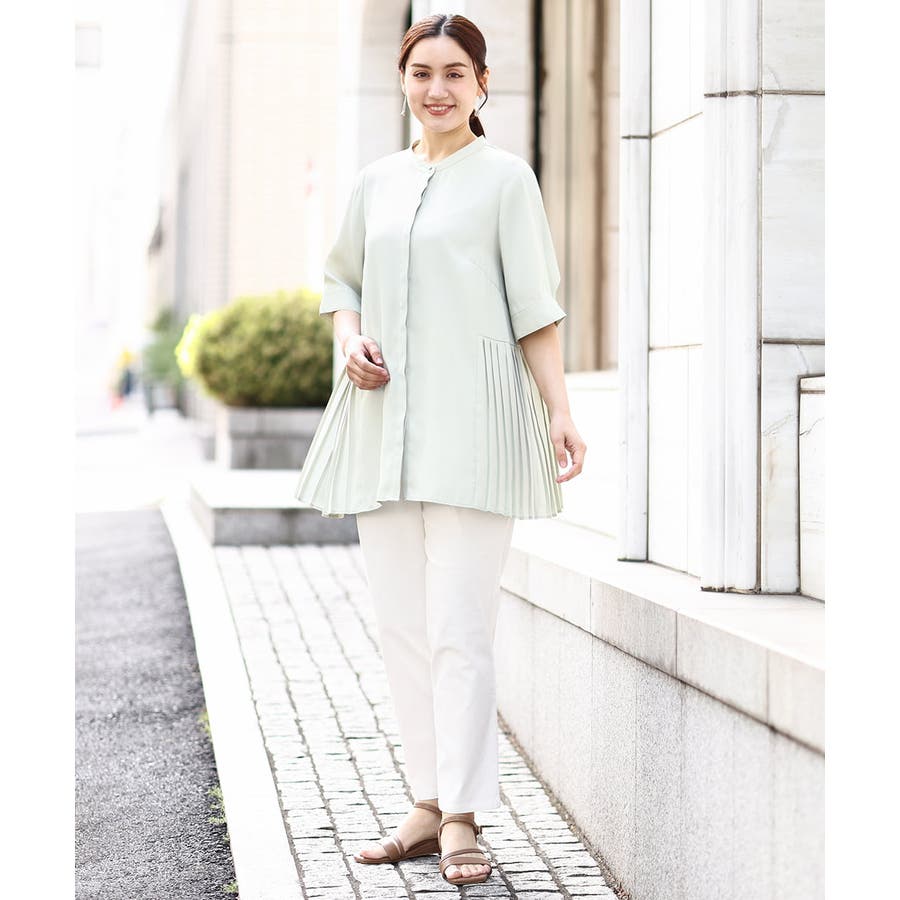 長めの着丈で、パンツを合わせるだけですっきりきれいにスタイリングが決まります。