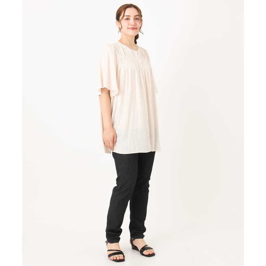 ゆったりシルエット&長め着丈ですっきり着られます。