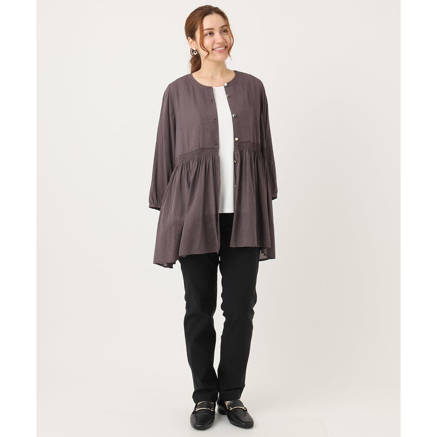 前あきの羽織にもなるデザインは、程よいシアー感が涼し気なブラウスです。