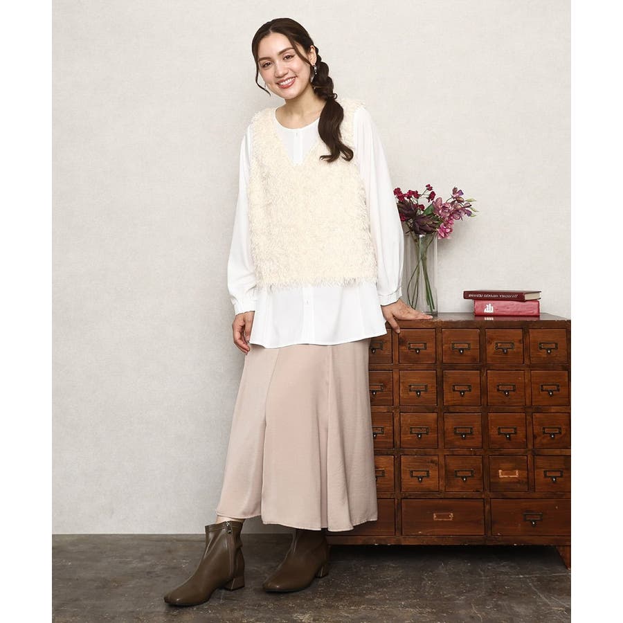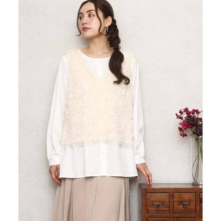 フェザーフリンジが可愛いベストとブラウスのセットアイテム。