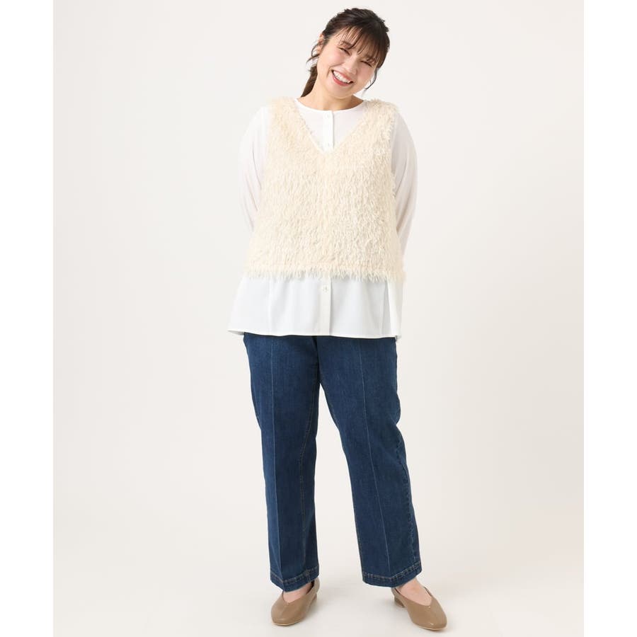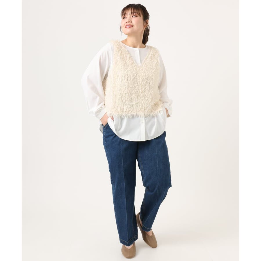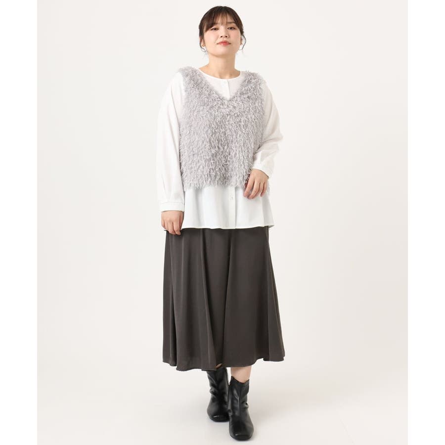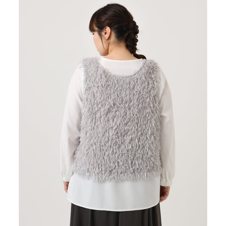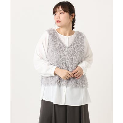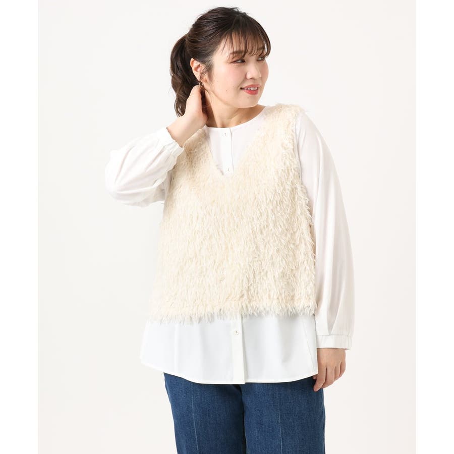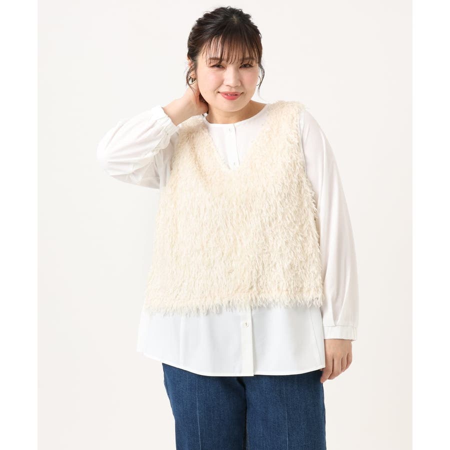 【大きいサイズ】フェザーベスト+ブラウスセット