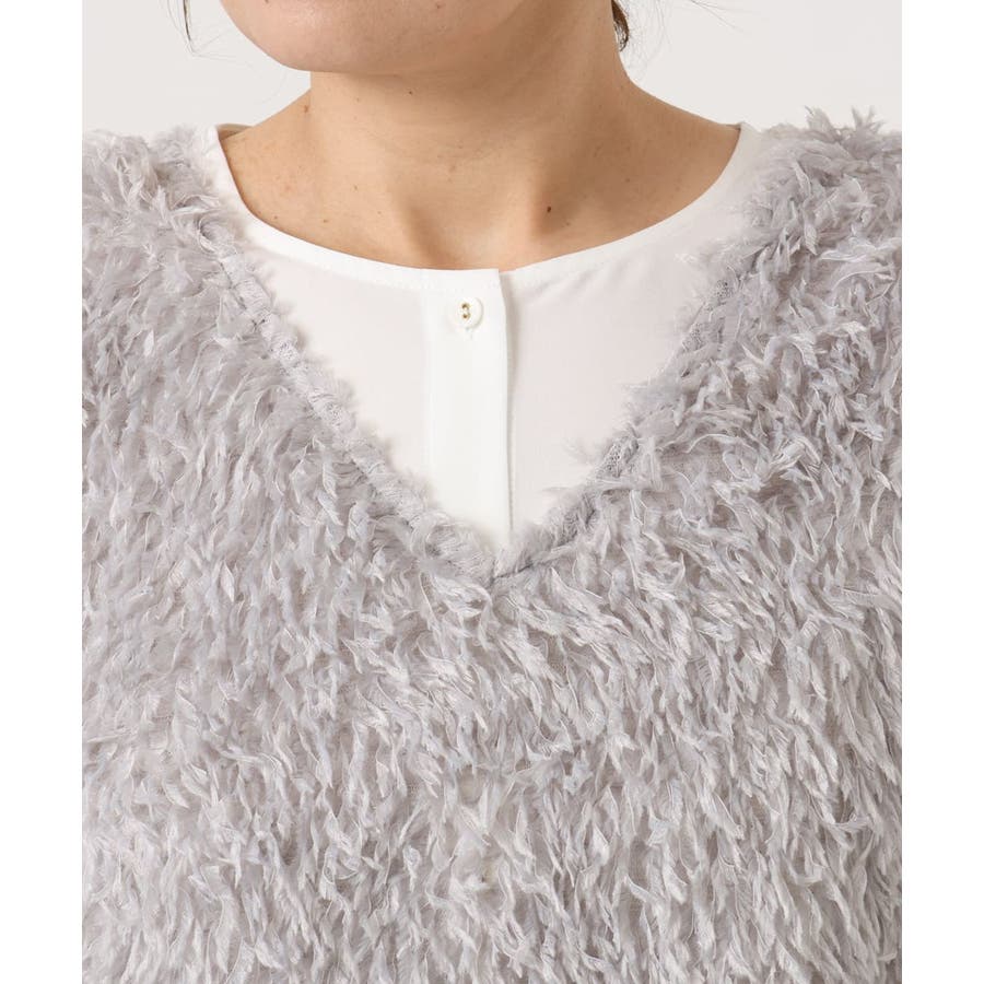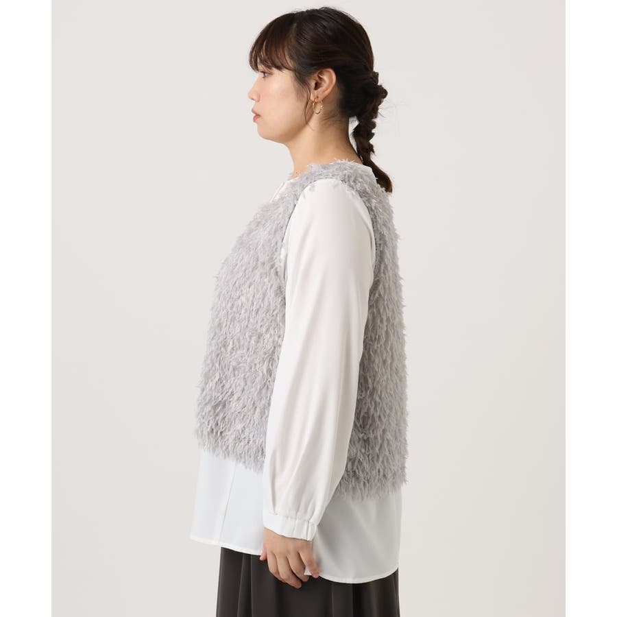 ふわふわとしたファー調にみえるフェザーヤーンをベストに。