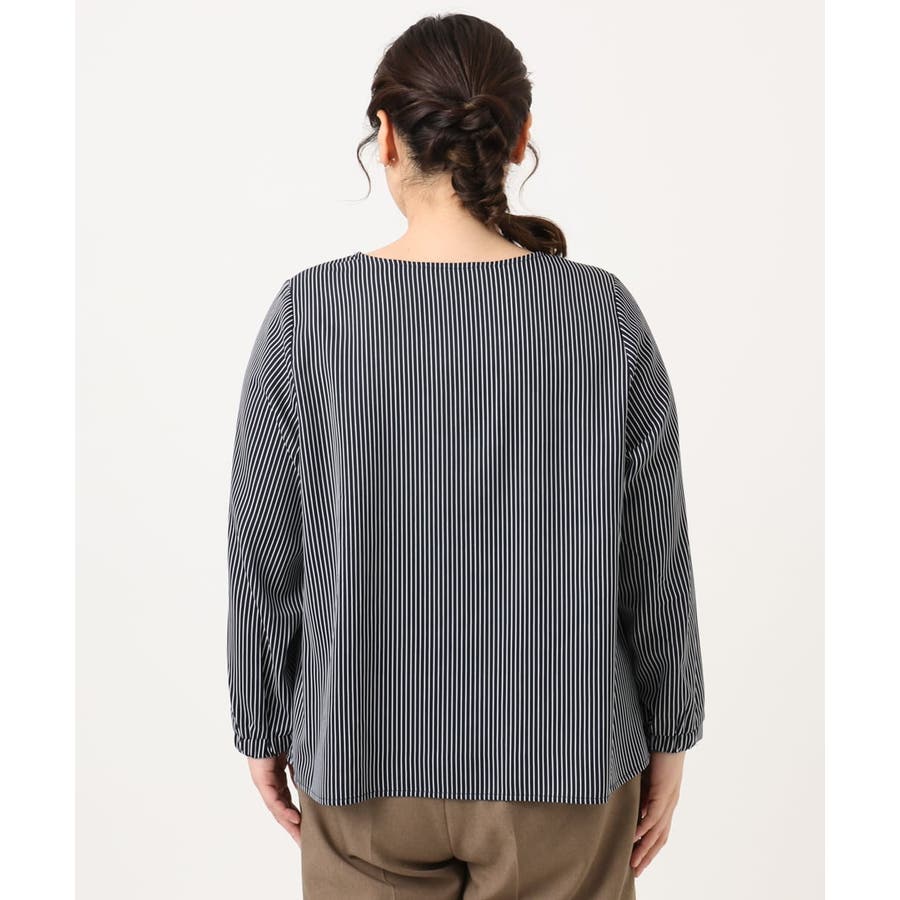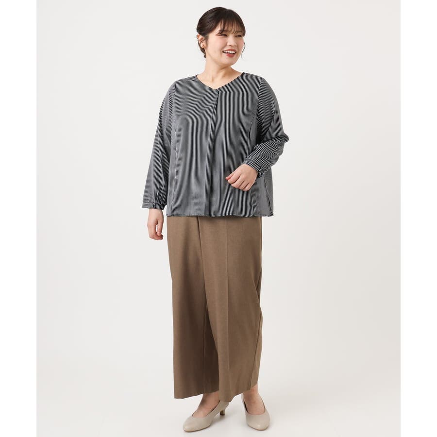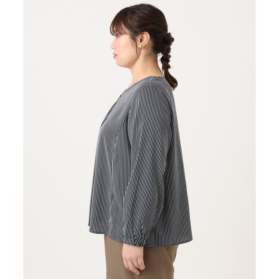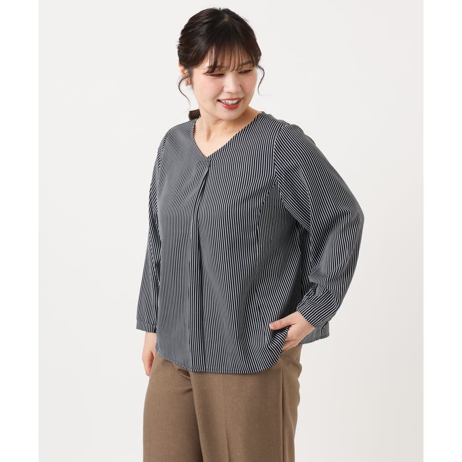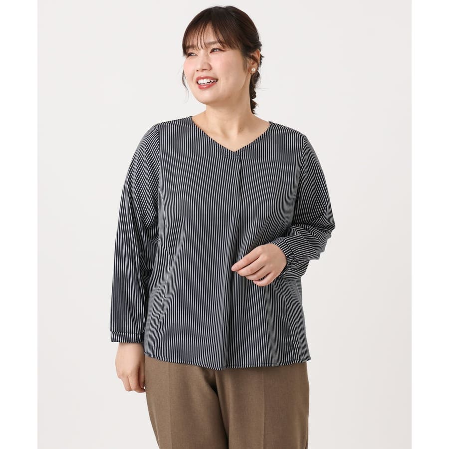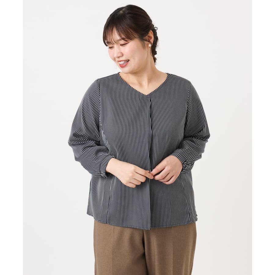 【大きいサイズ/11号サイズあり】Vネックストライプブラウス