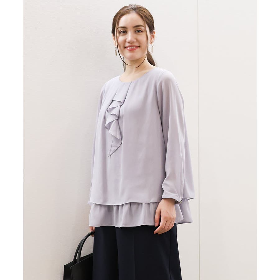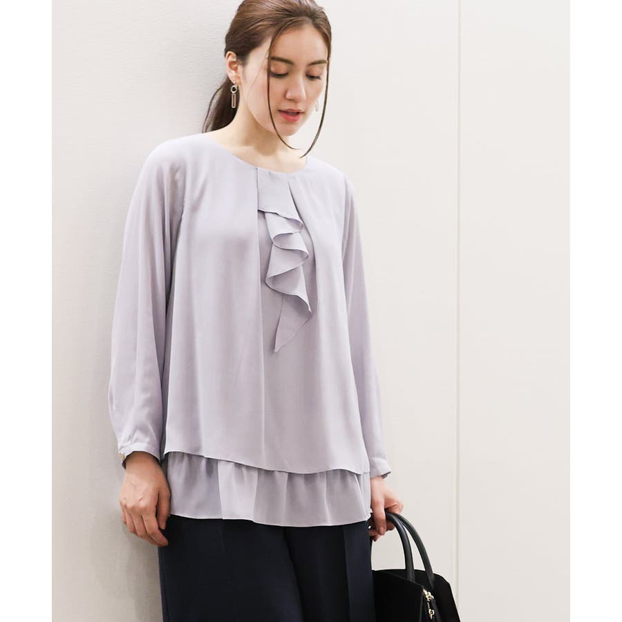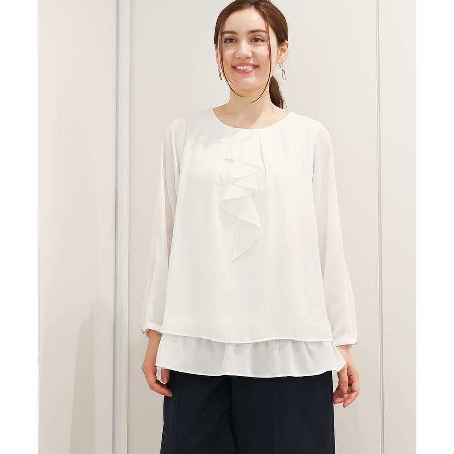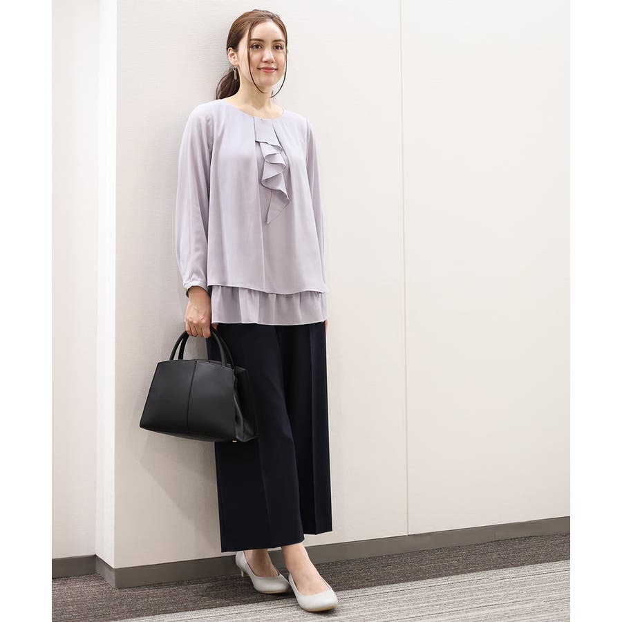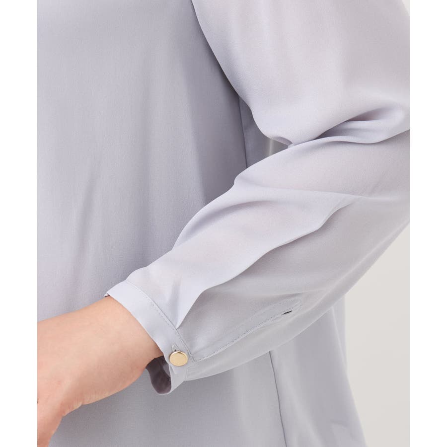 裾は2段のレイヤードになっており、1段をボトムインすることでジャケットを羽織っても表からブラウスが見えずすっきりご着用いただけます。