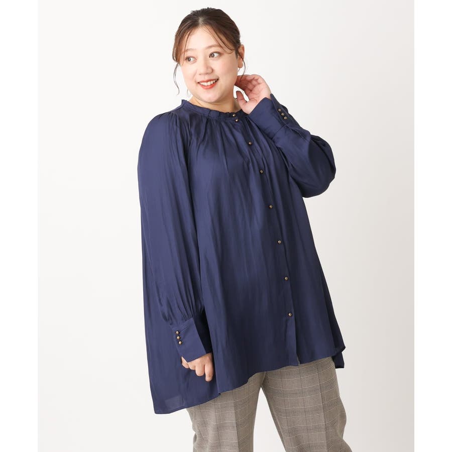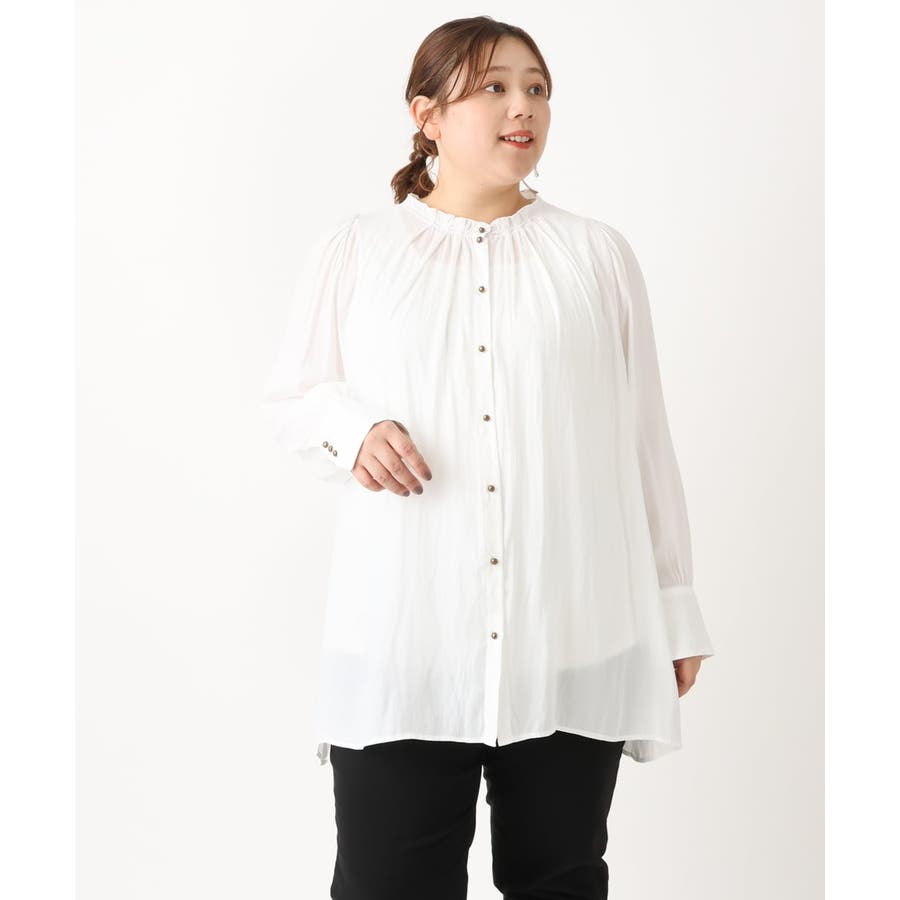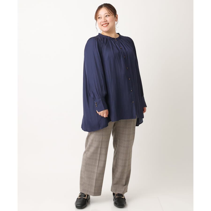 【大きいサイズ】タックギャザーブラウス