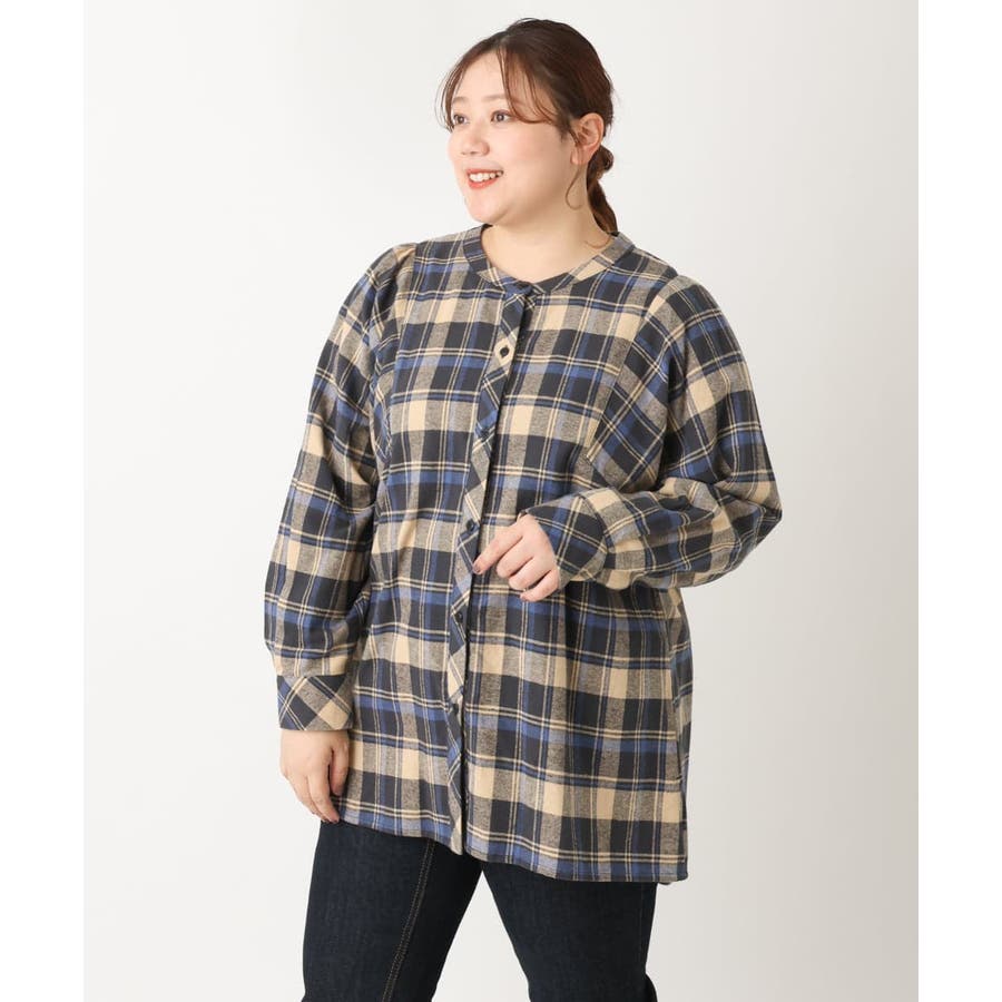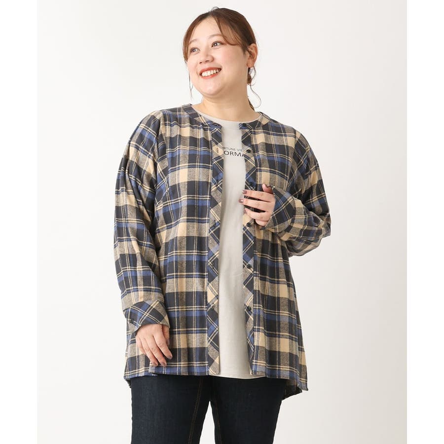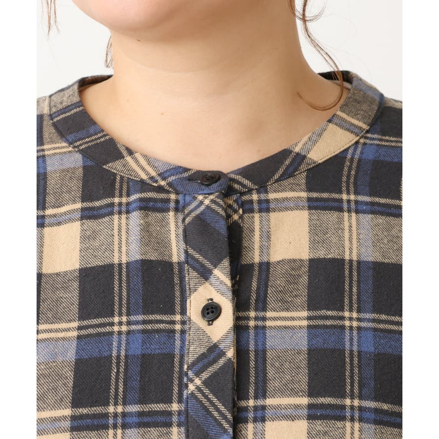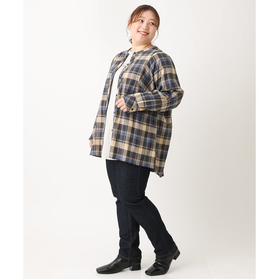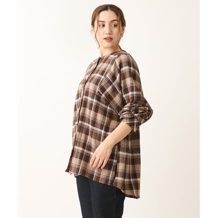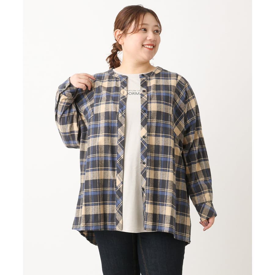 【大きいサイズ/11号サイズあり】バンドカラーチェックネルシャツ