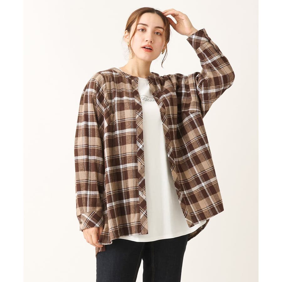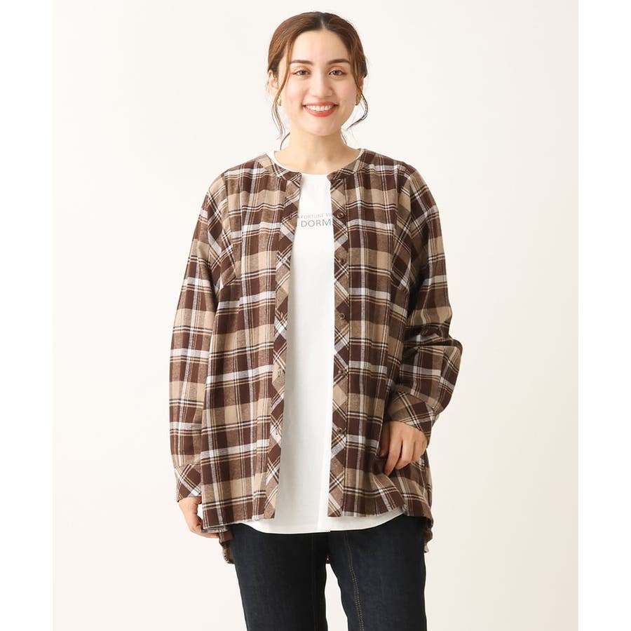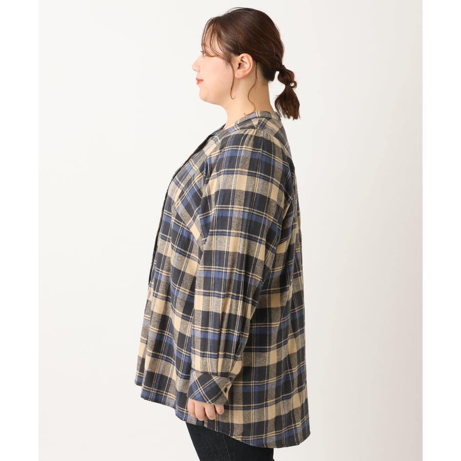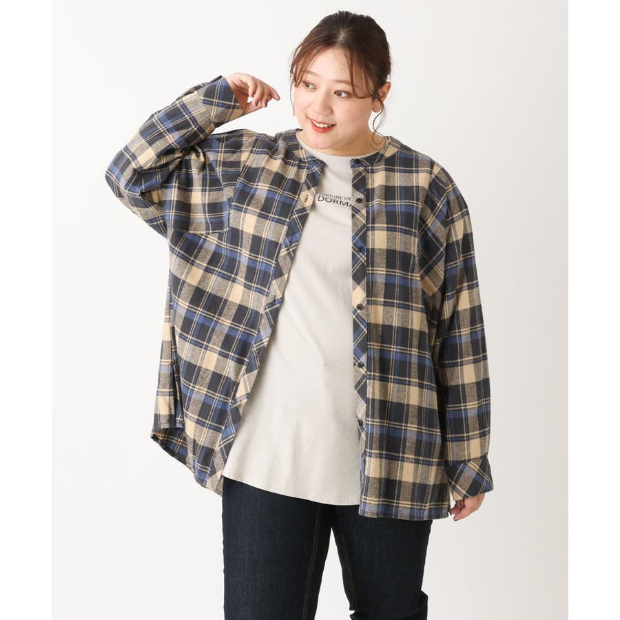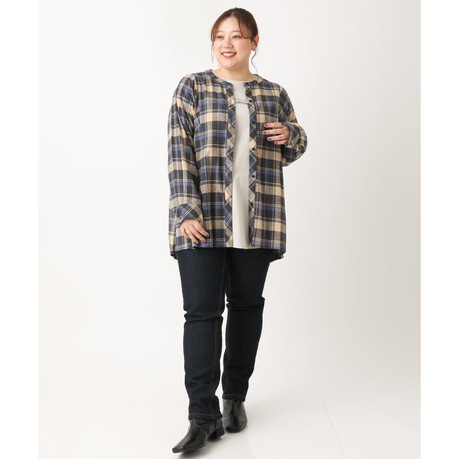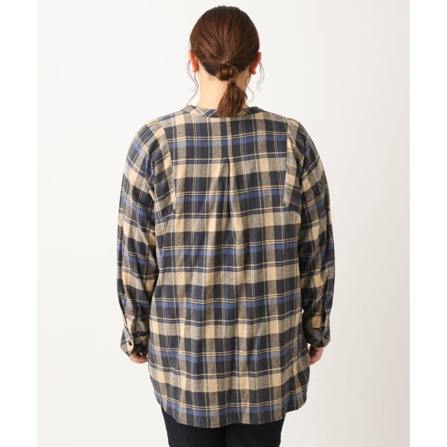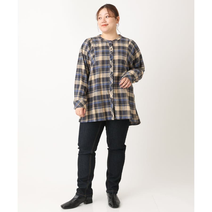 【大きいサイズ/11号サイズあり】バンドカラーチェックネルシャツ