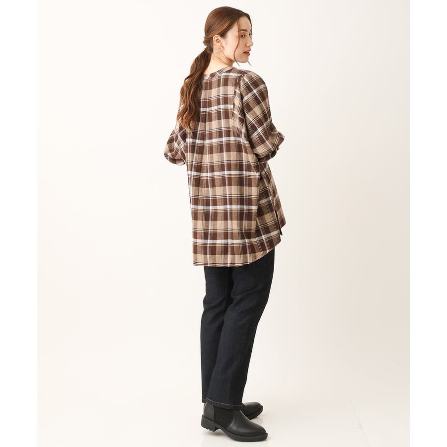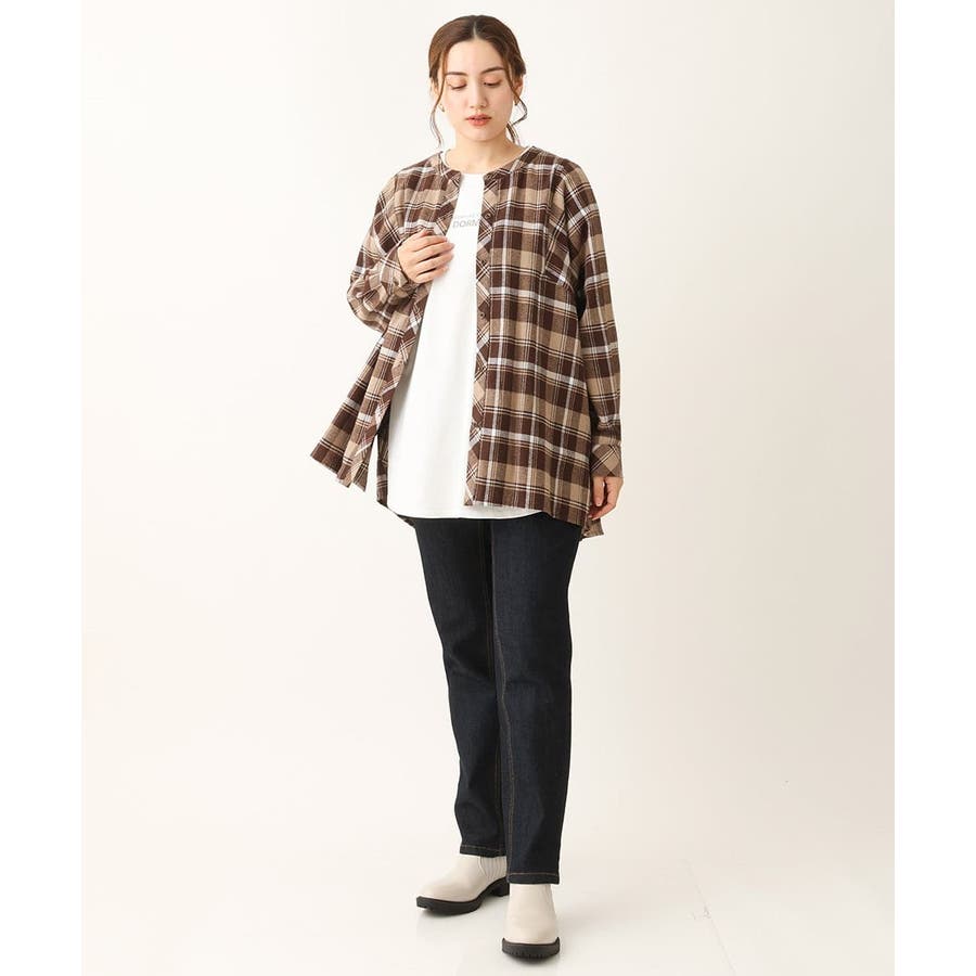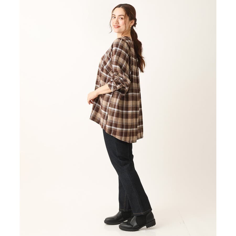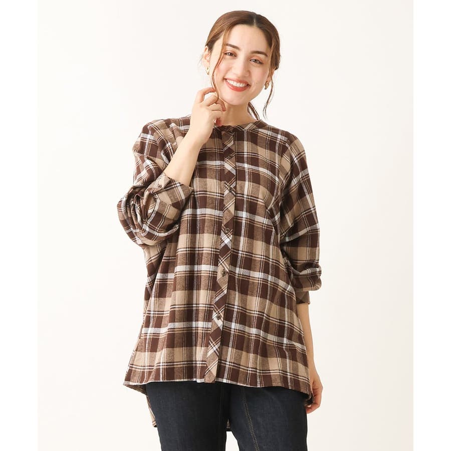 ◆バンドカラーがポイントの女性らしく着られるネルシャツ◆