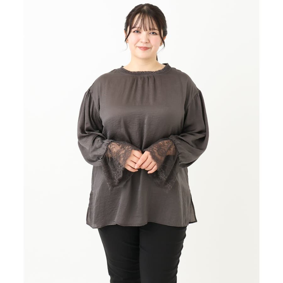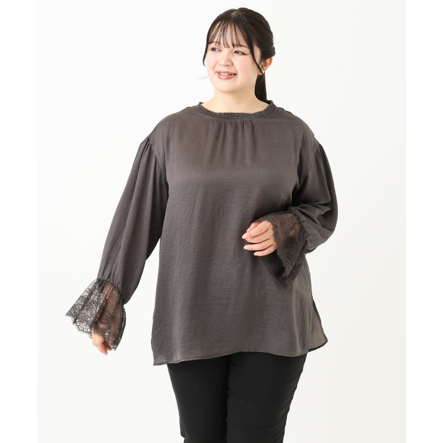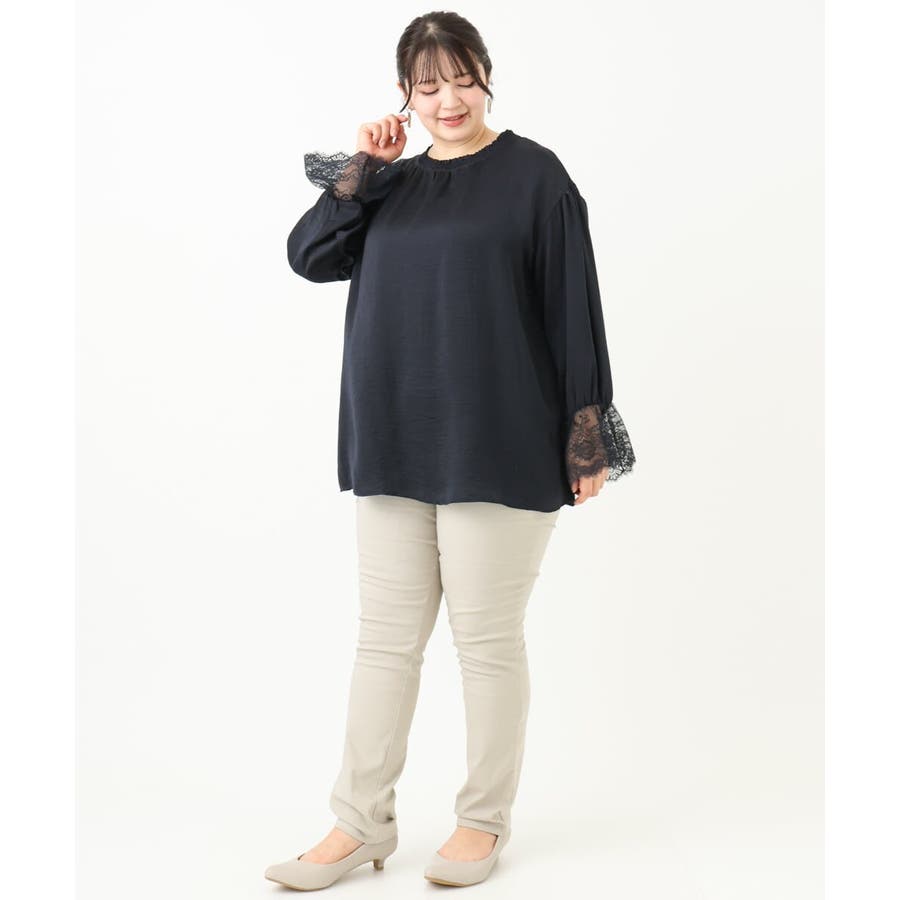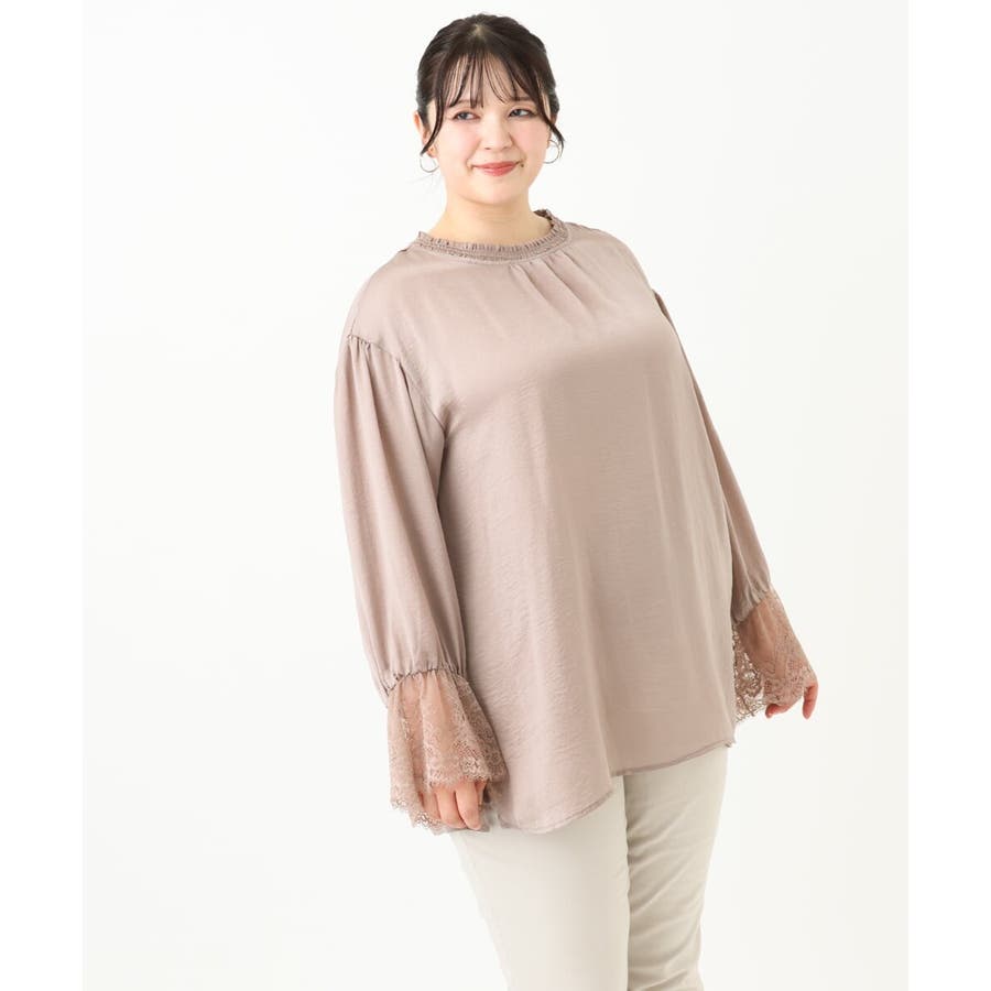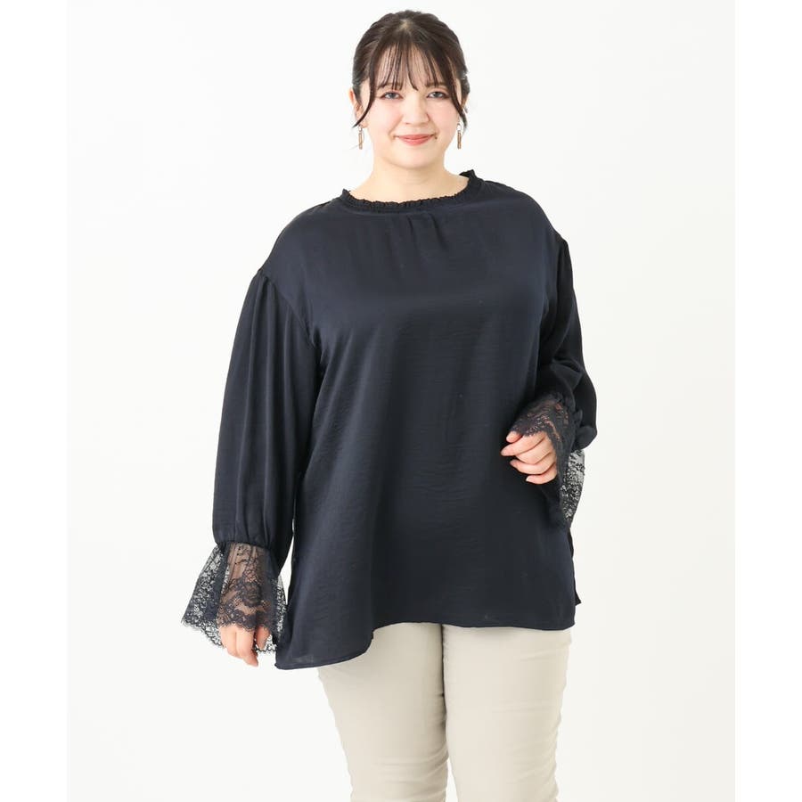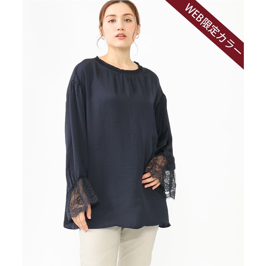袖口に配した繊細なレースが大人可愛いブラウス。