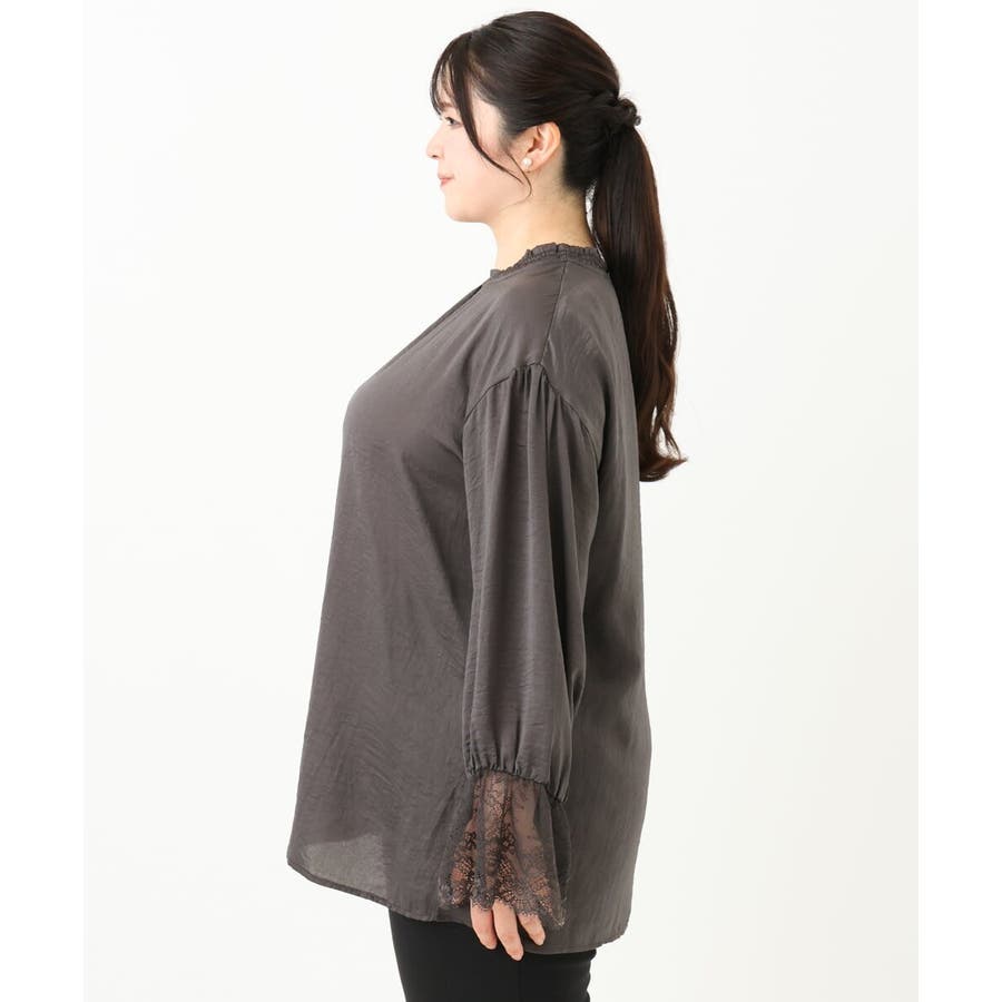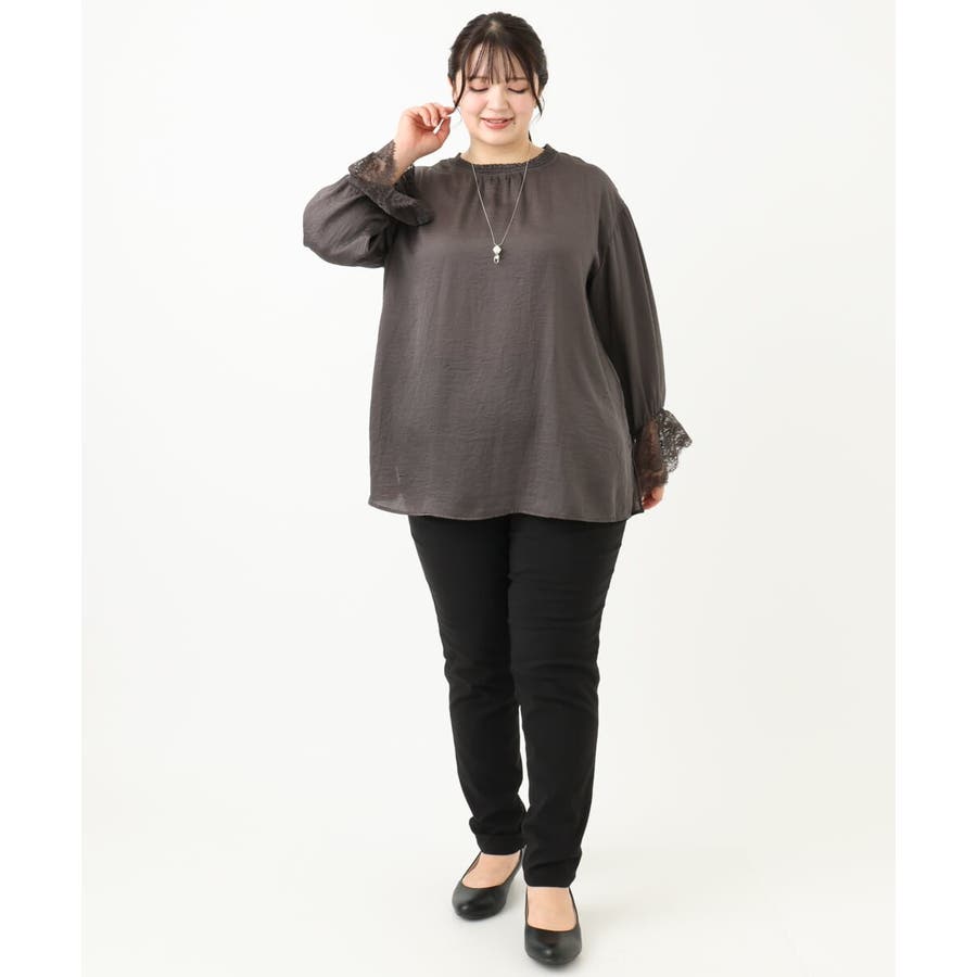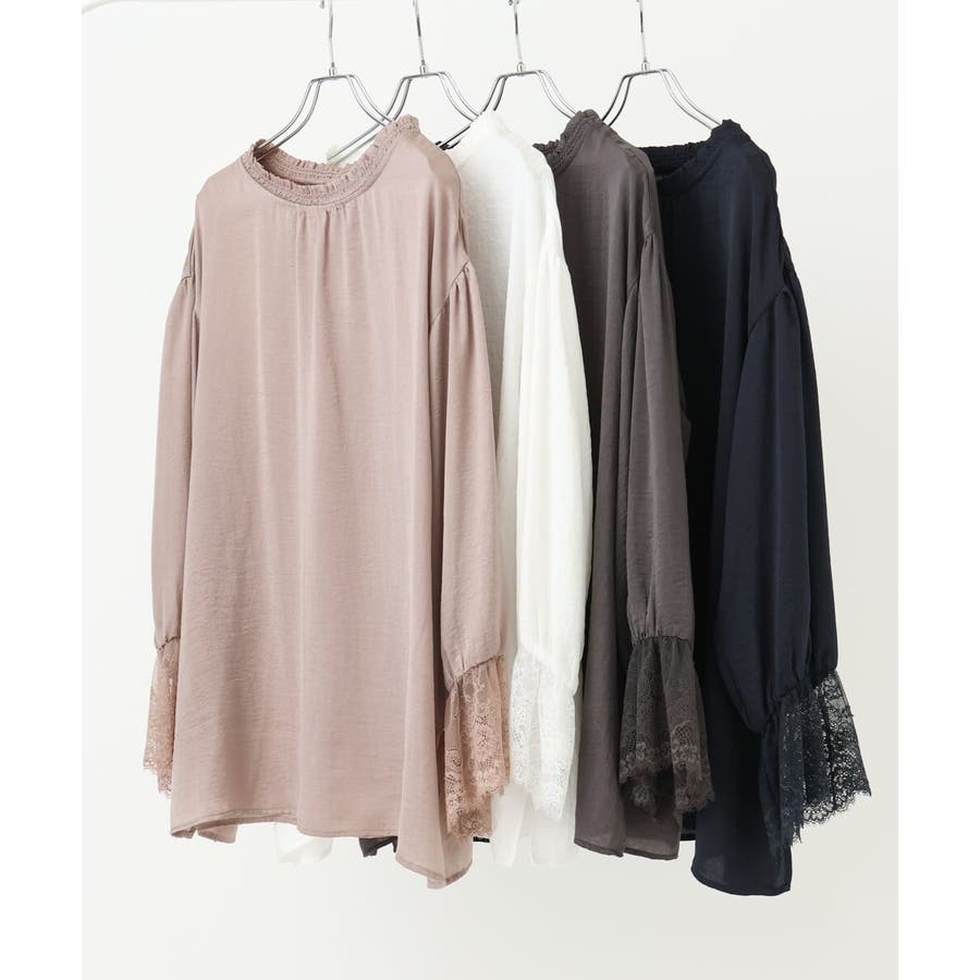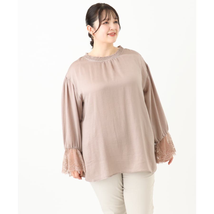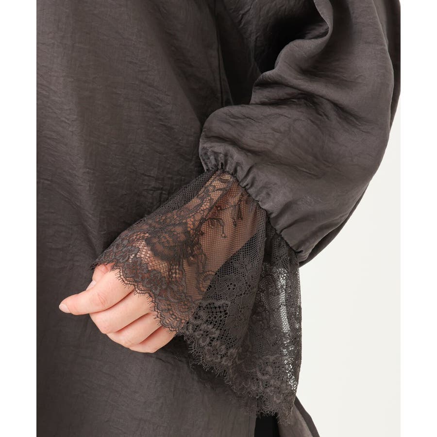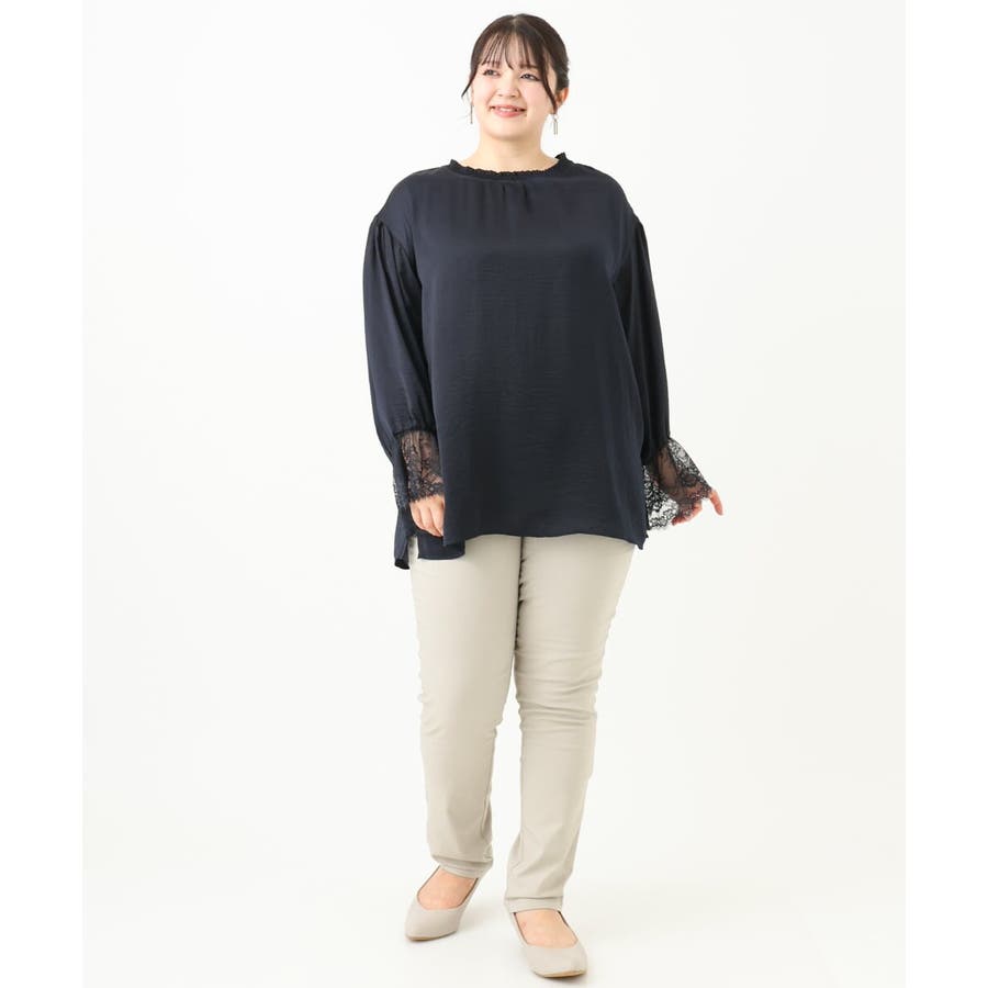 袖口に配した繊細なレースが大人可愛いブラウス。