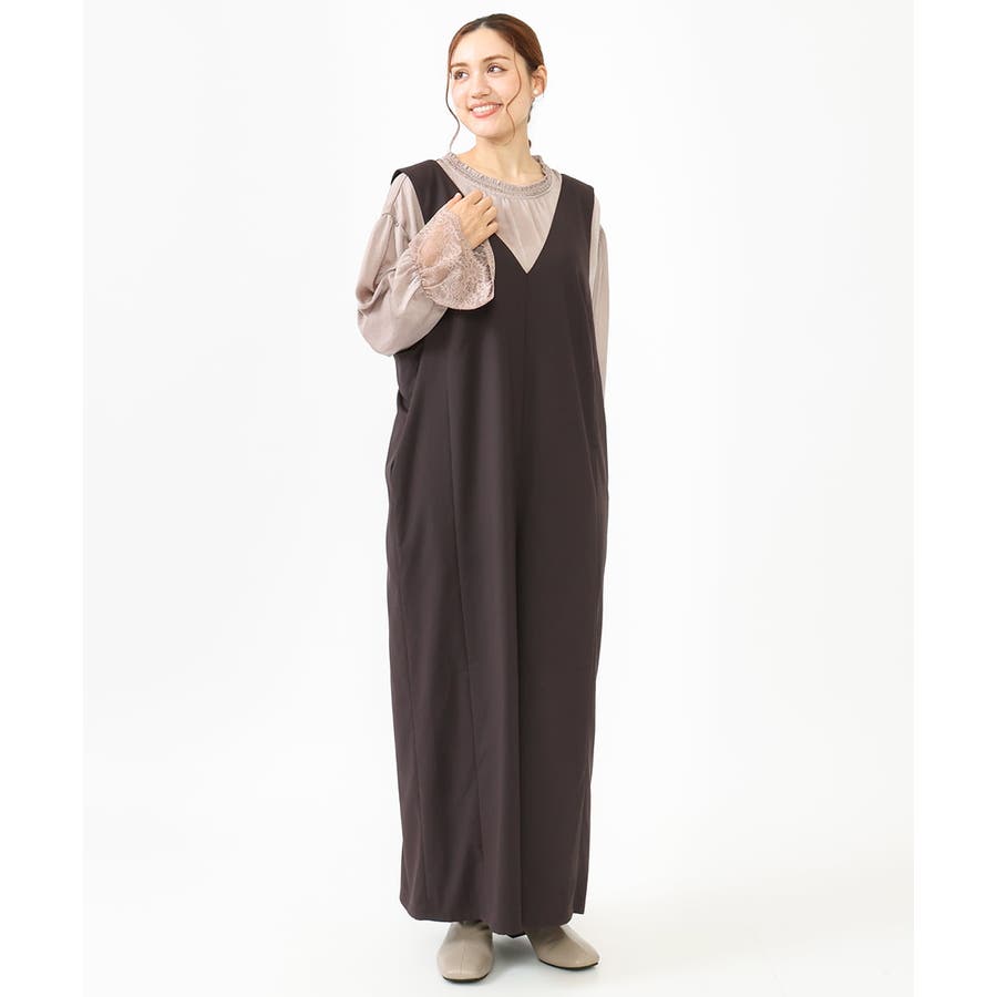 サロペット(品番OLELV22139)に合わせたスタイリングがトレンド感もありおすすめ。