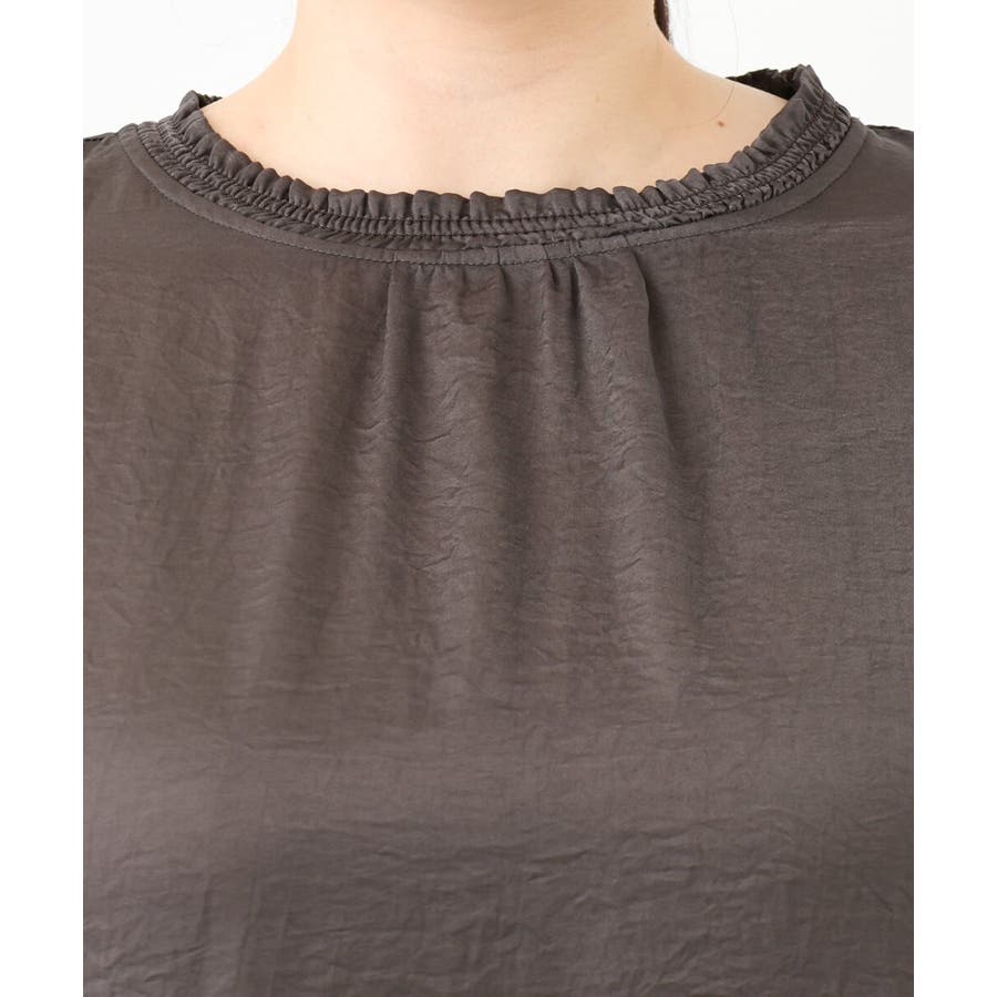 襟ぐりには細いシャーリングギャザーを入れ女性らしい柔らかな雰囲気に。