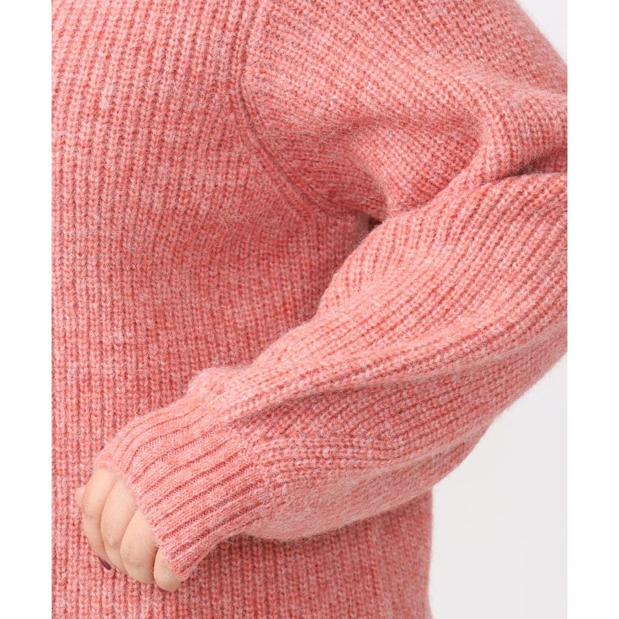 太番手のナイロンアクリルポリエステル混紡糸を、ローゲージの片畦編みで編んだニットです。