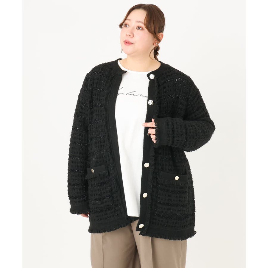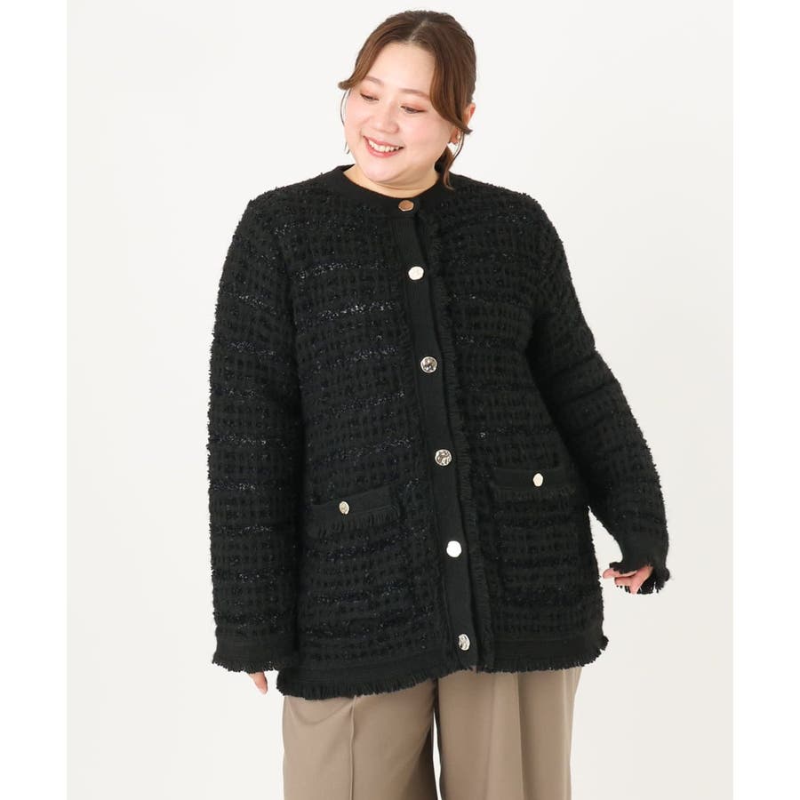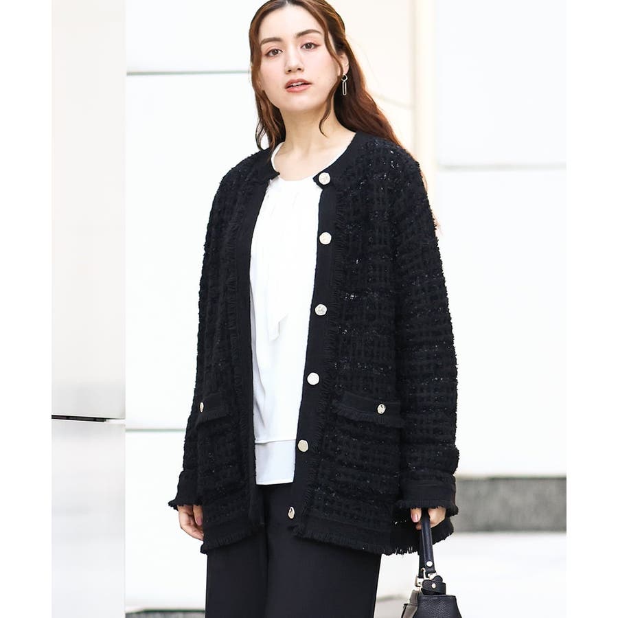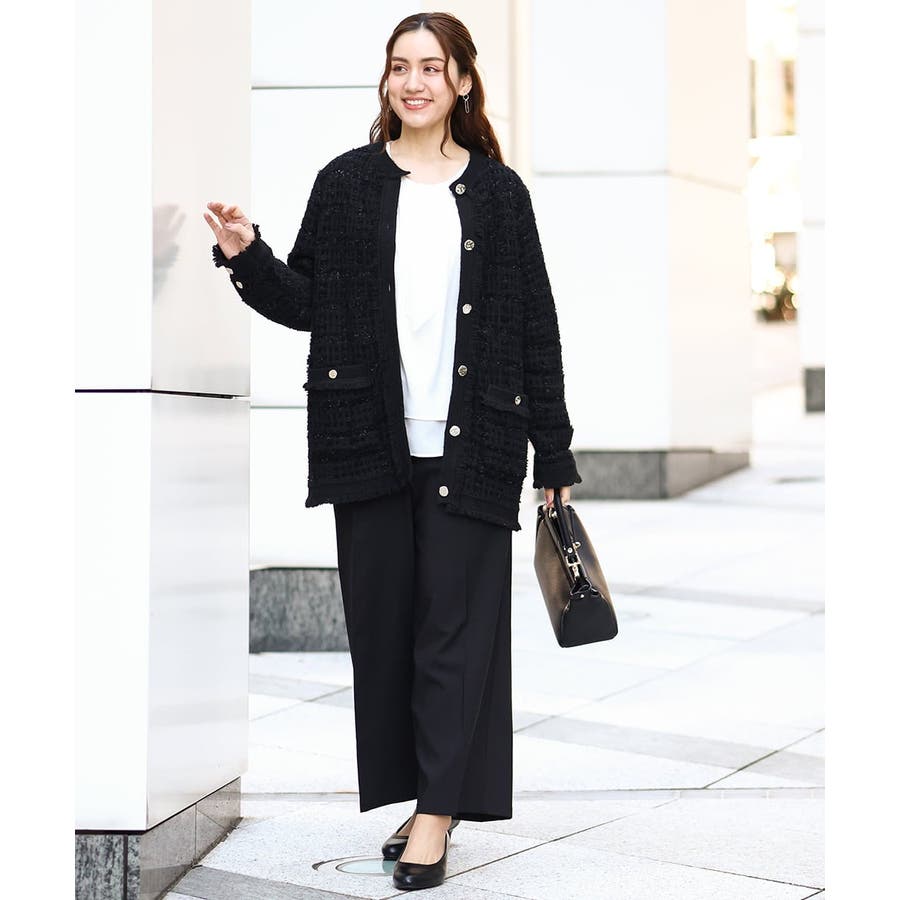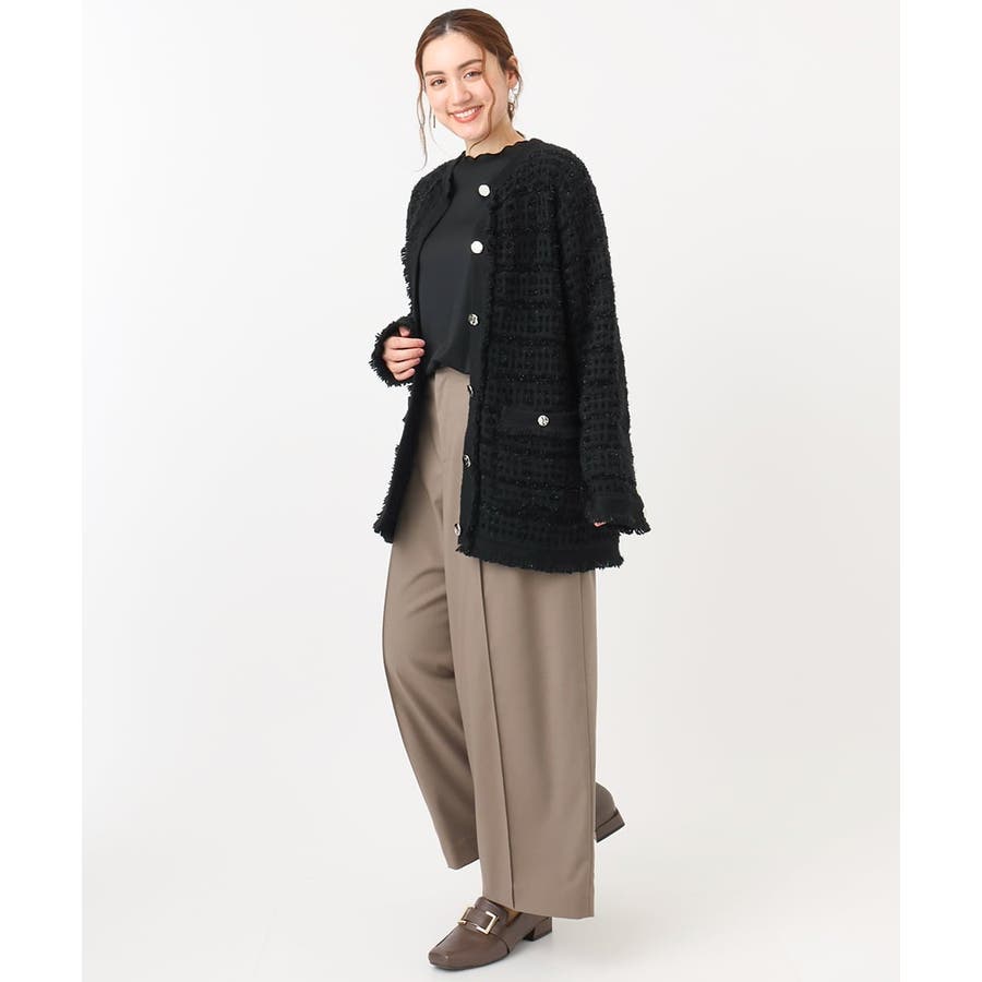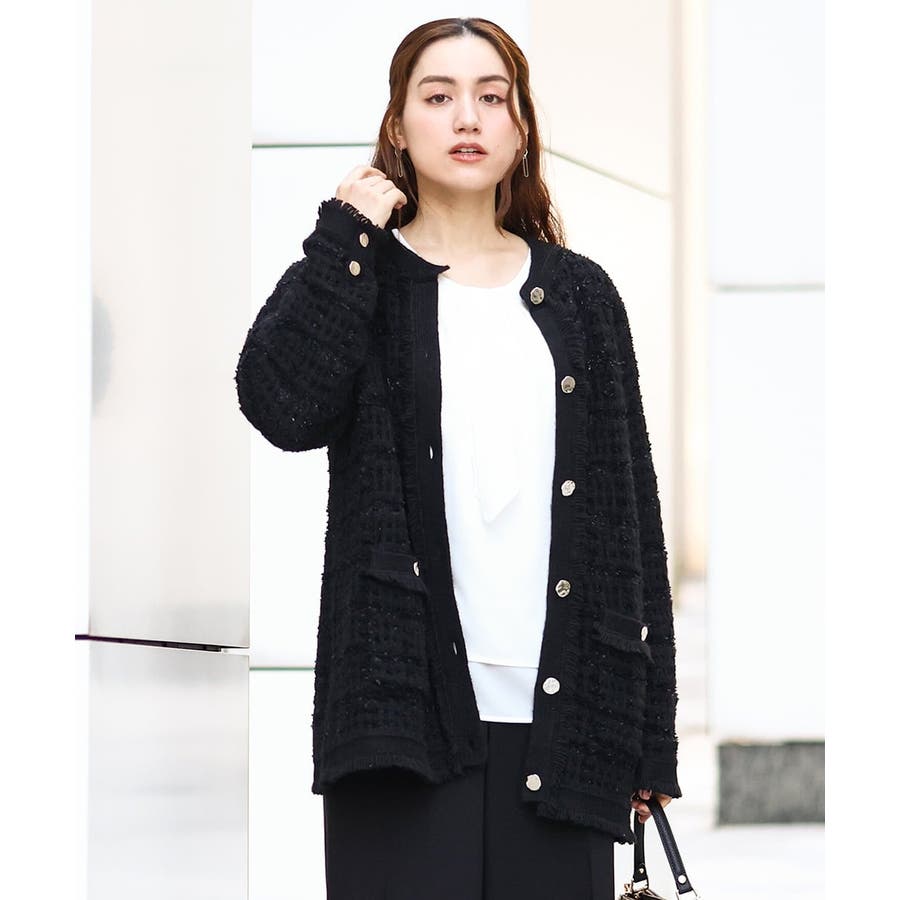 しっかりツィード風ですが、ニット編地なのでカーディガン感覚で着られて着心地も楽ちんです。