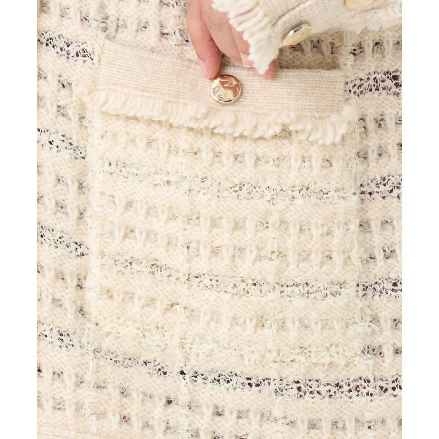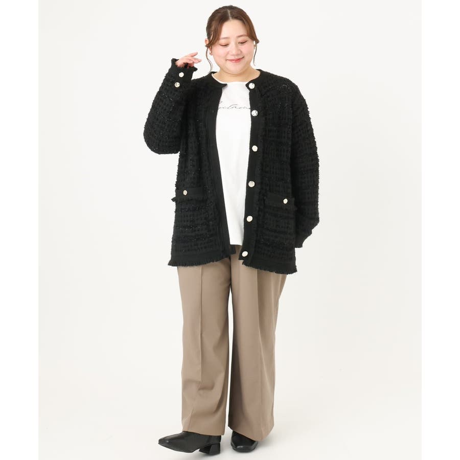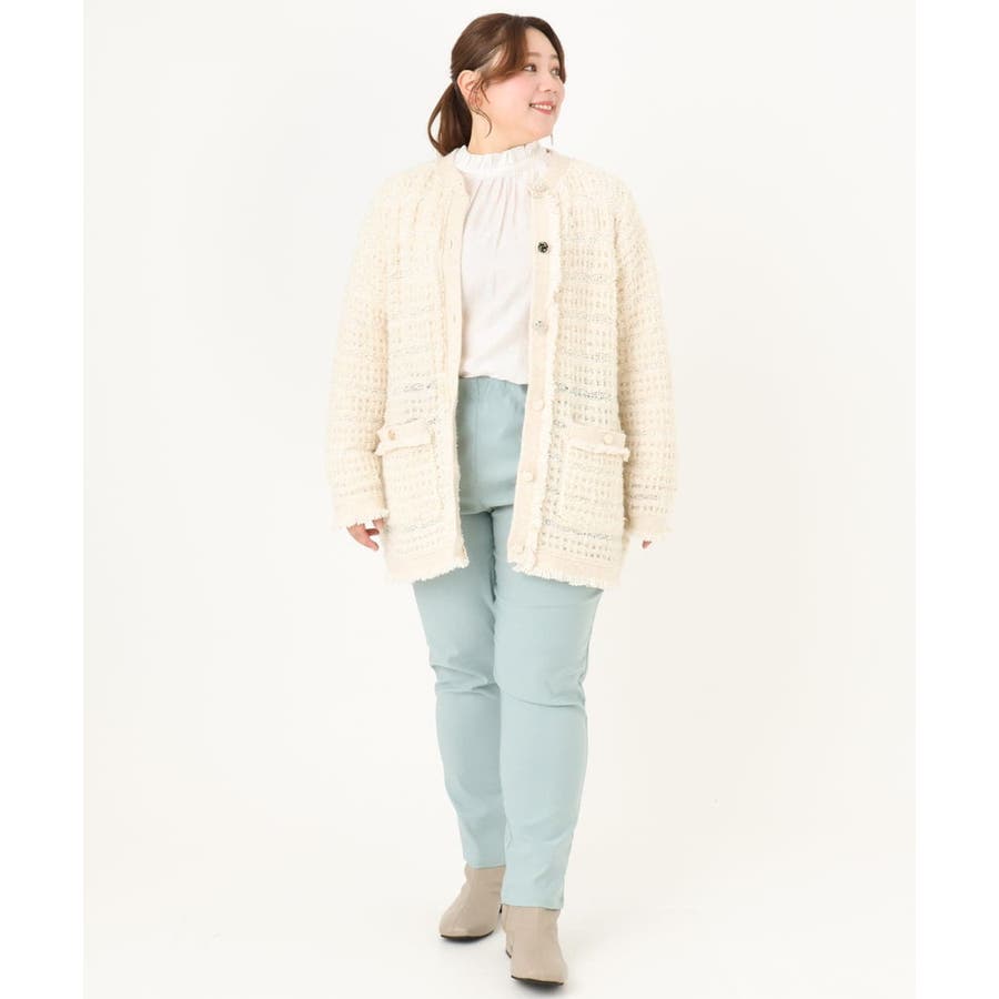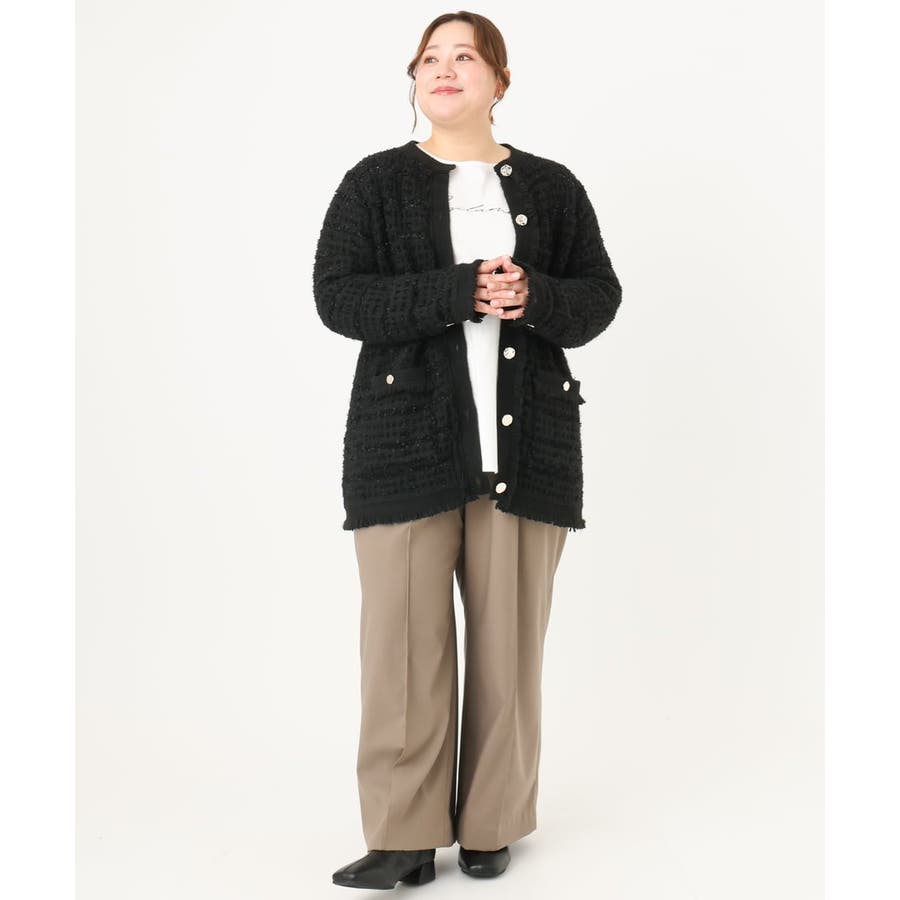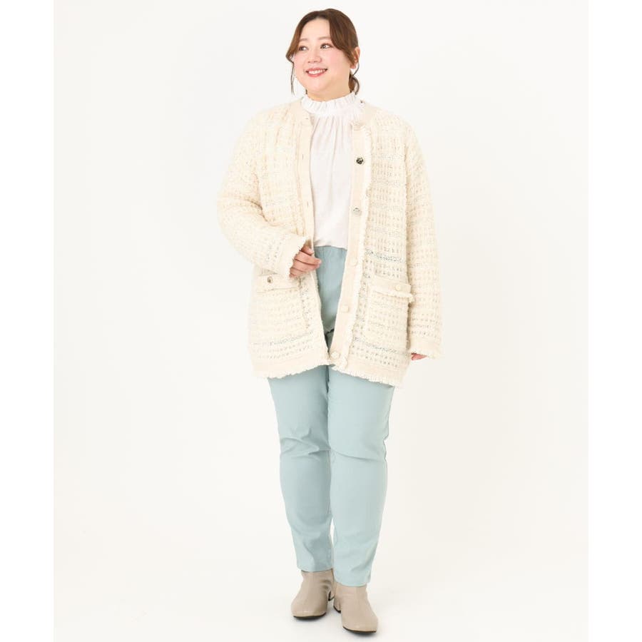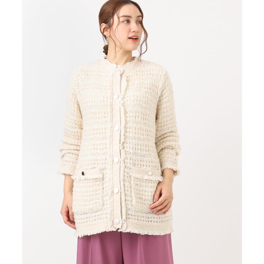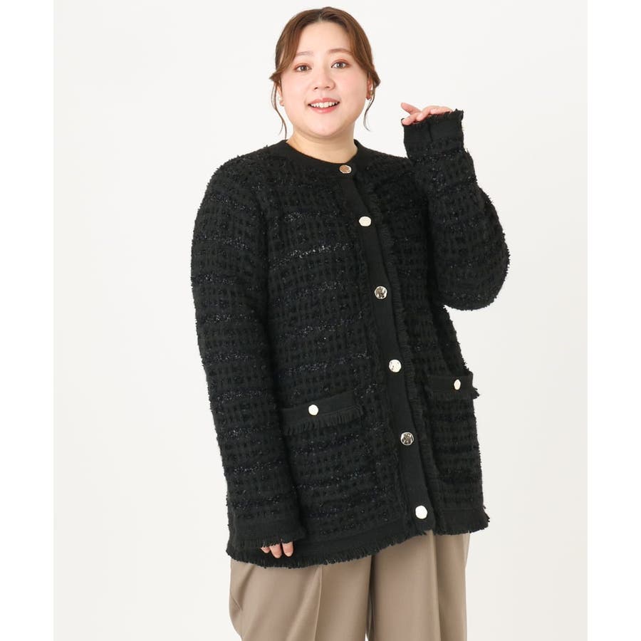 しっかりツィード風ですが、ニット編地なのでカーディガン感覚で着られて着心地も楽ちんです。