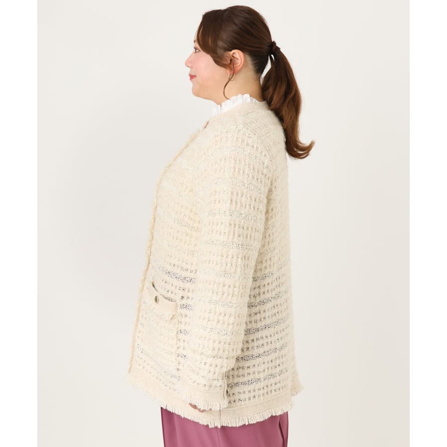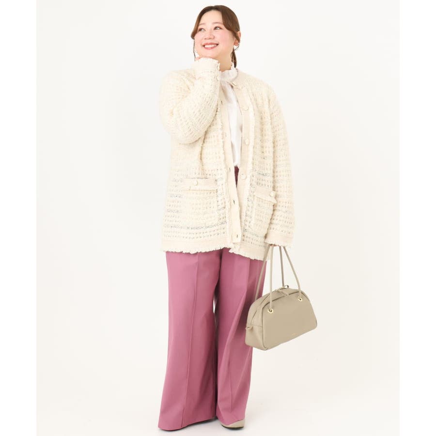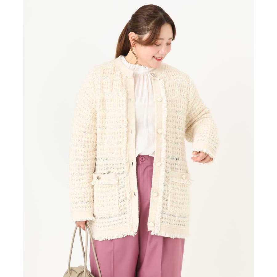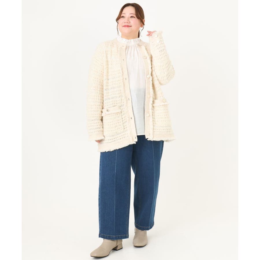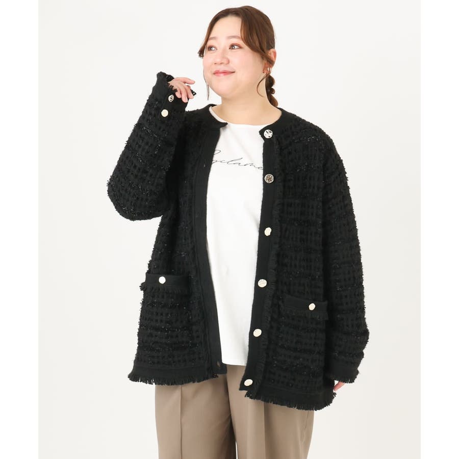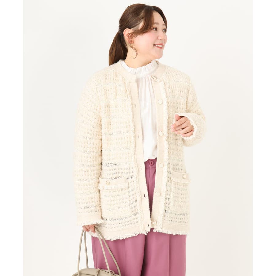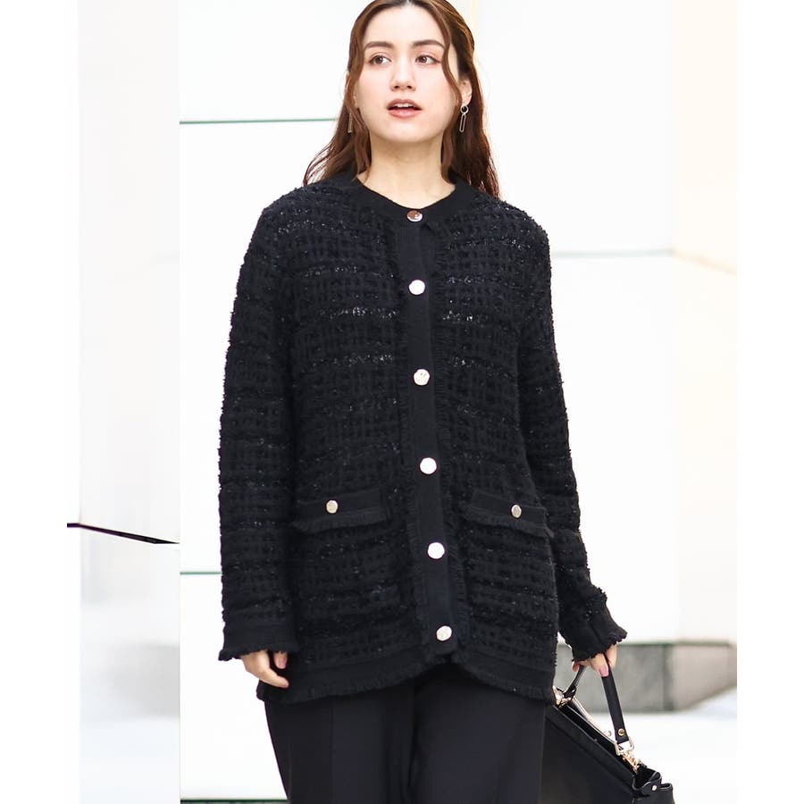きれい目スタイルからカジュアルスタイルまで幅広くご着用いただけるツィードニットジャケット。