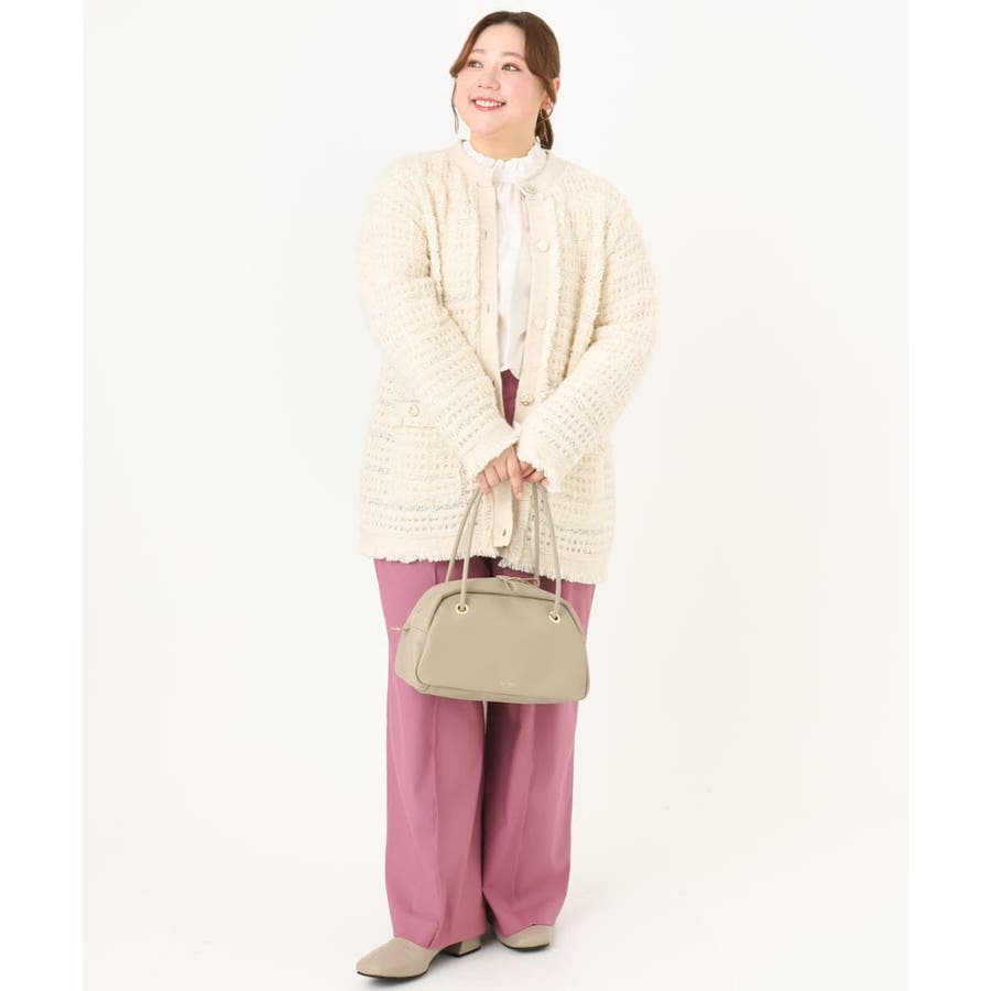 テープヤーンやストレート糸を編んだツィードみせするニット編地を使用しています。