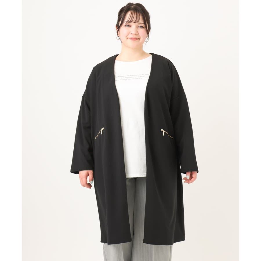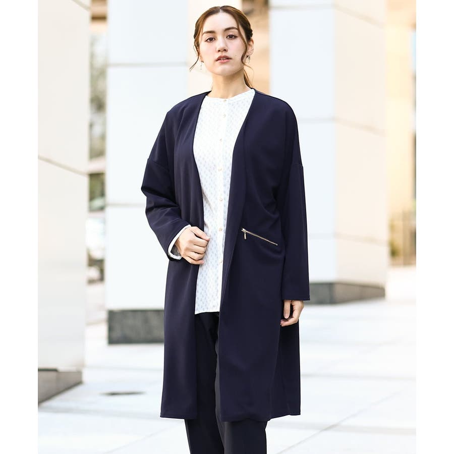 ノーカラーなのでインナーを選ばずさっと羽織るだけでスタイリングが決まります。