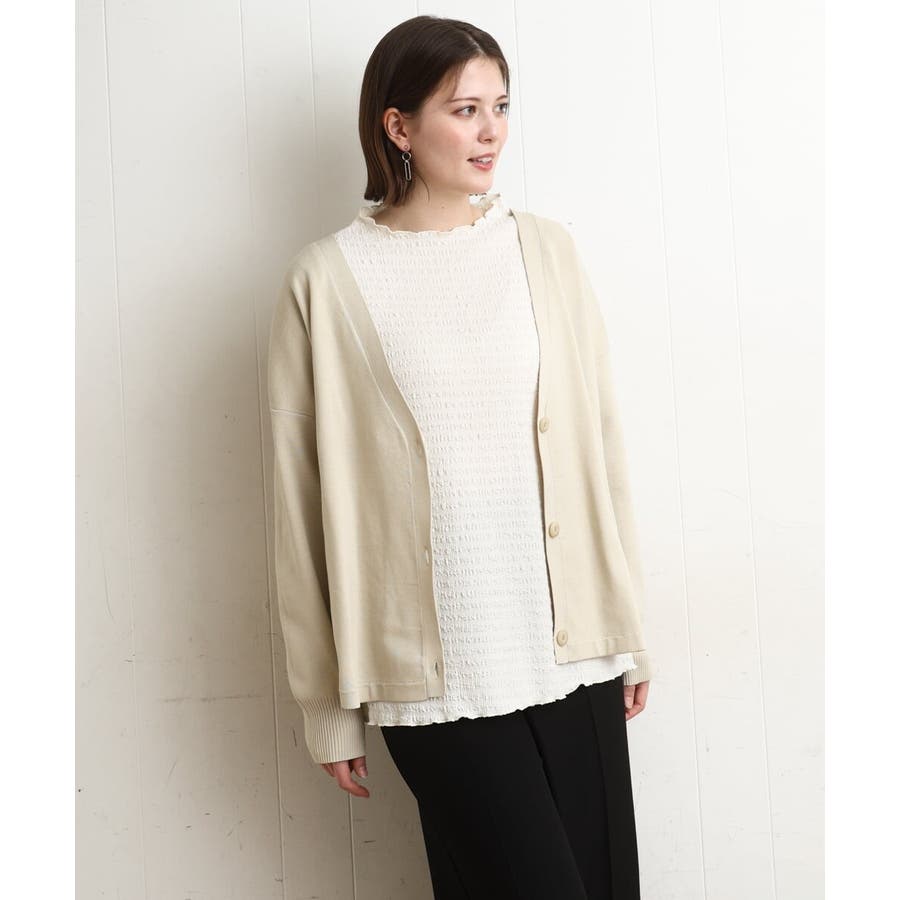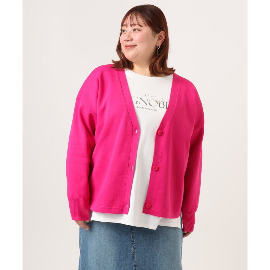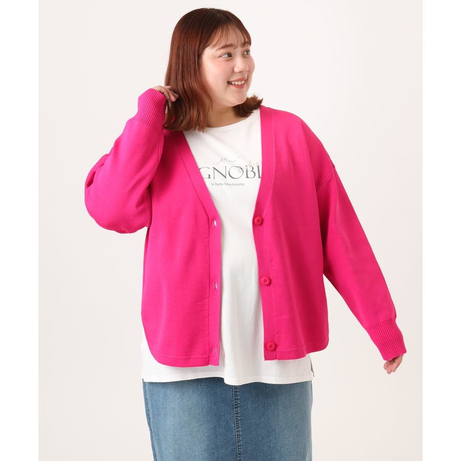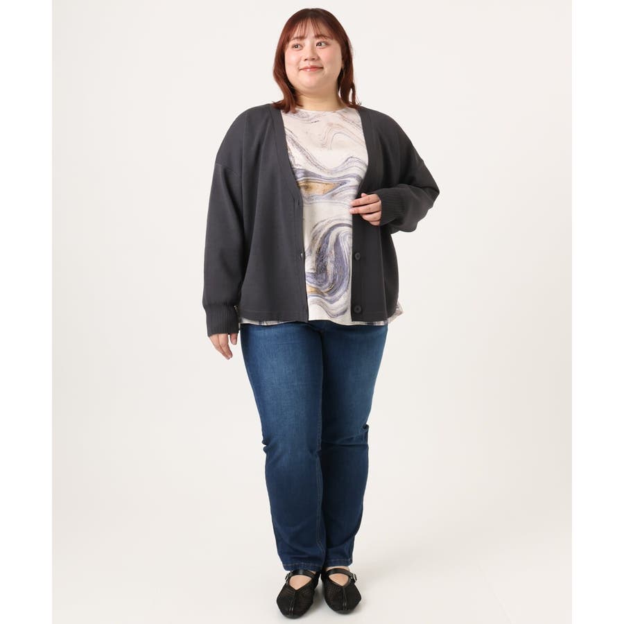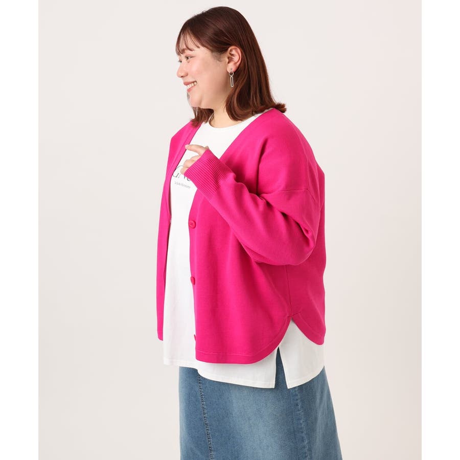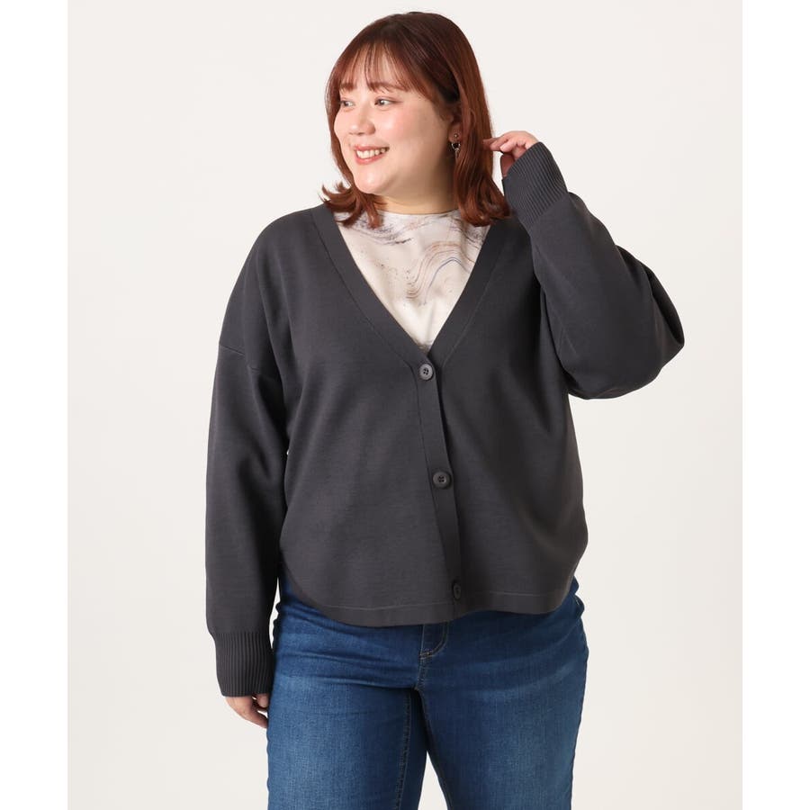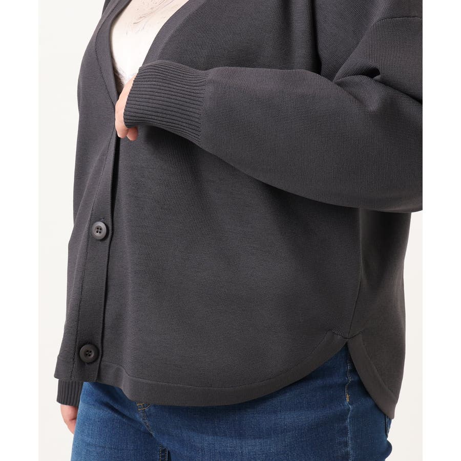 【大きいサイズ/洗える】カーブヘムボクシーカーディガン