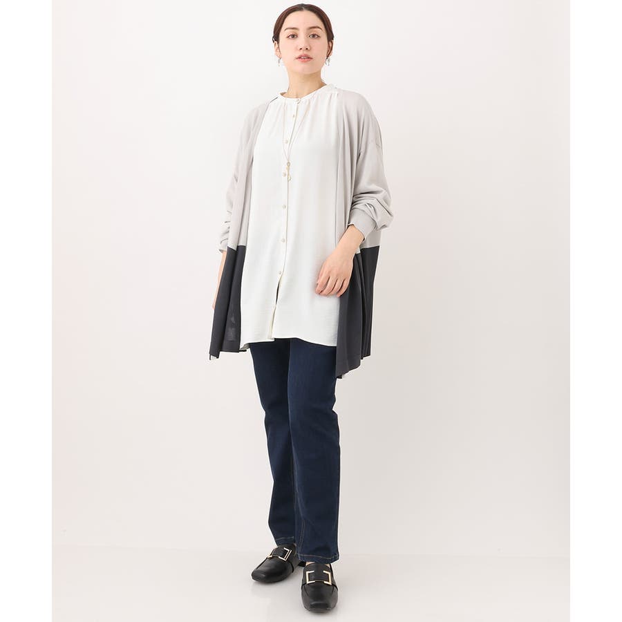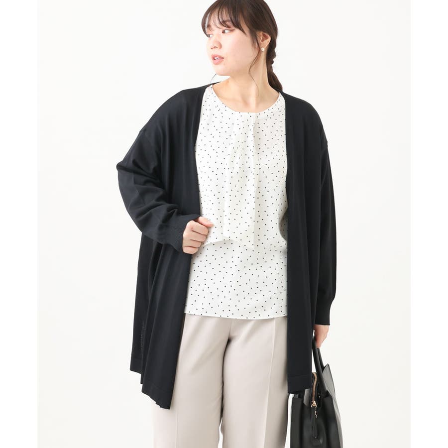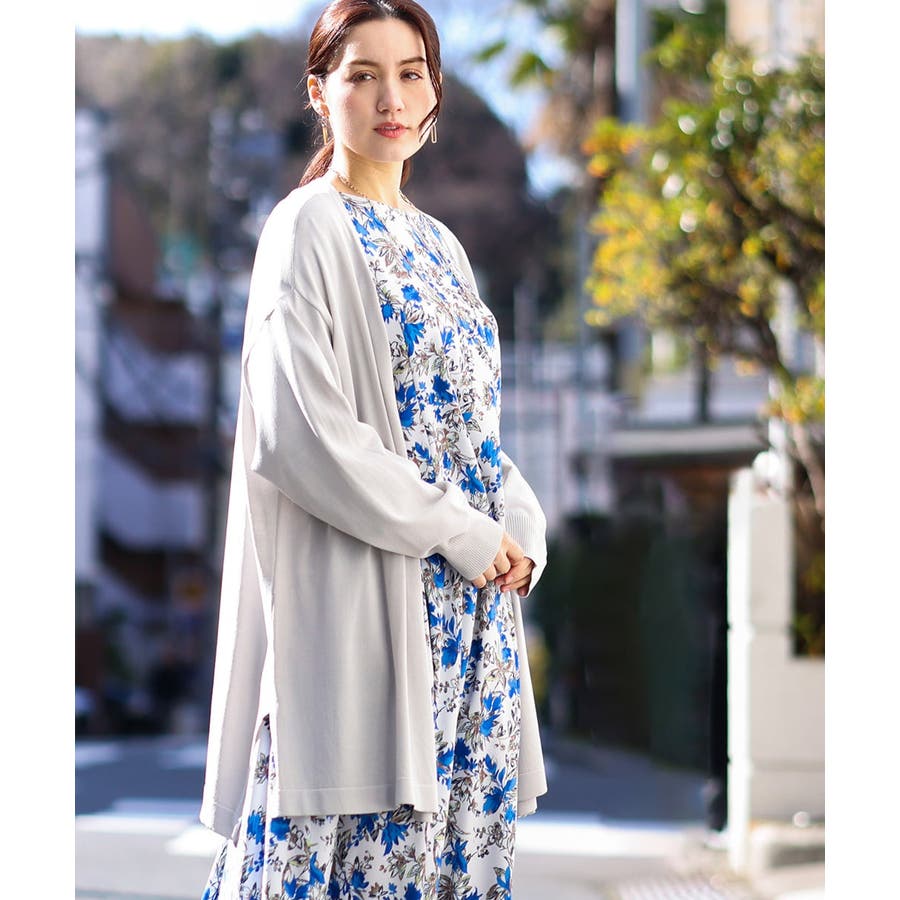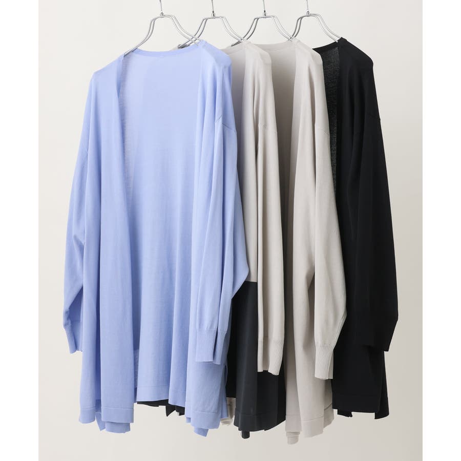 体のラインを拾わずさらっと着られるボクシータイプのトッパーカーディガン。