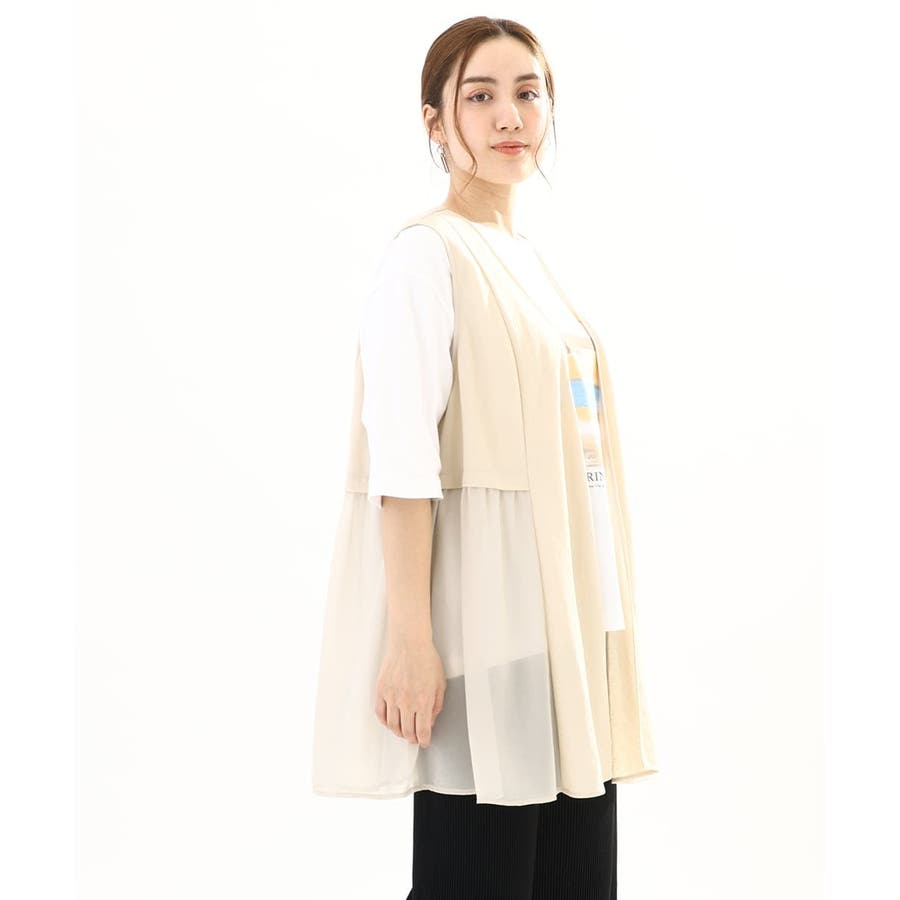 上身頃と前端はサラッと柔らかなジャージー生地を使用し、ペプラム部分はシアーなジョーゼットを切り替えに。