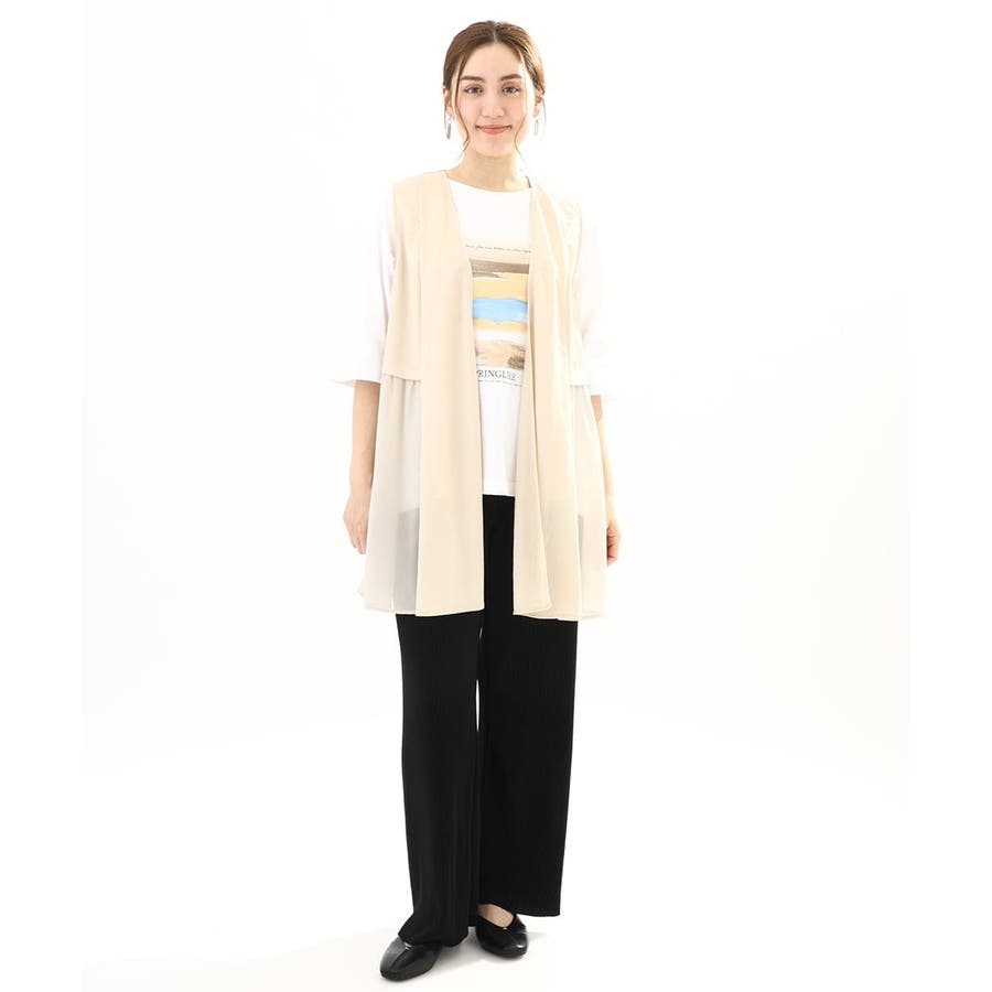 Tシャツ合わせでもブラウス合わせでもすっきり着られる汎用性のあるアイテムです。
