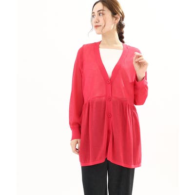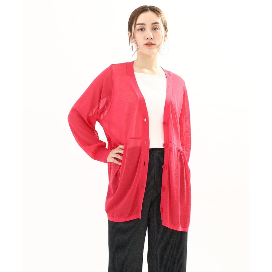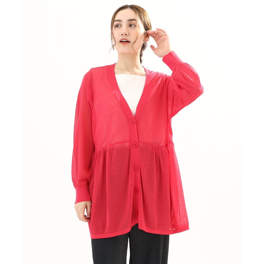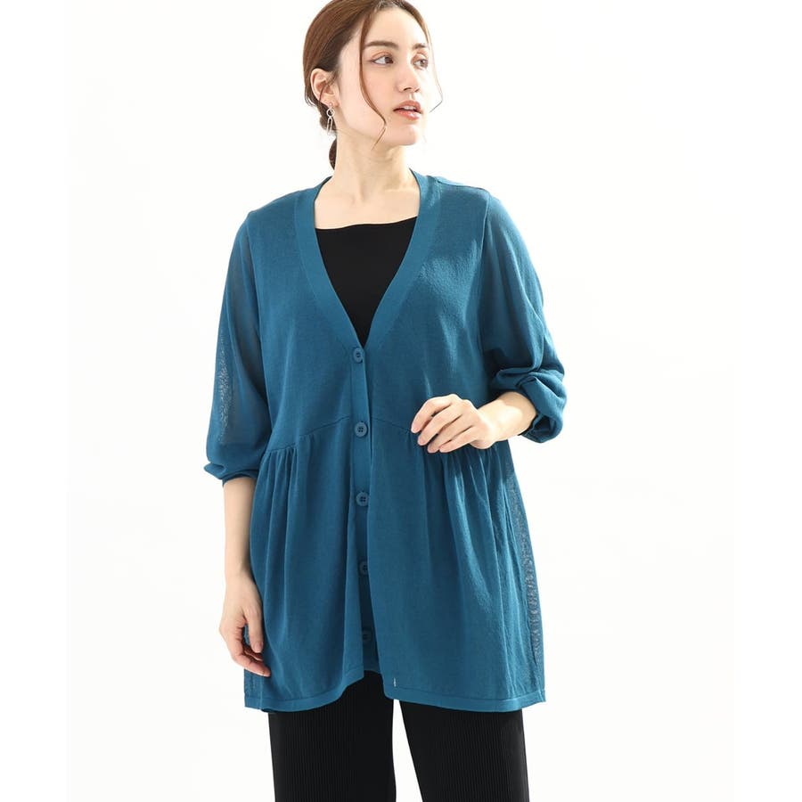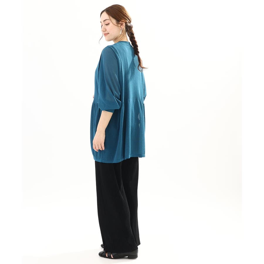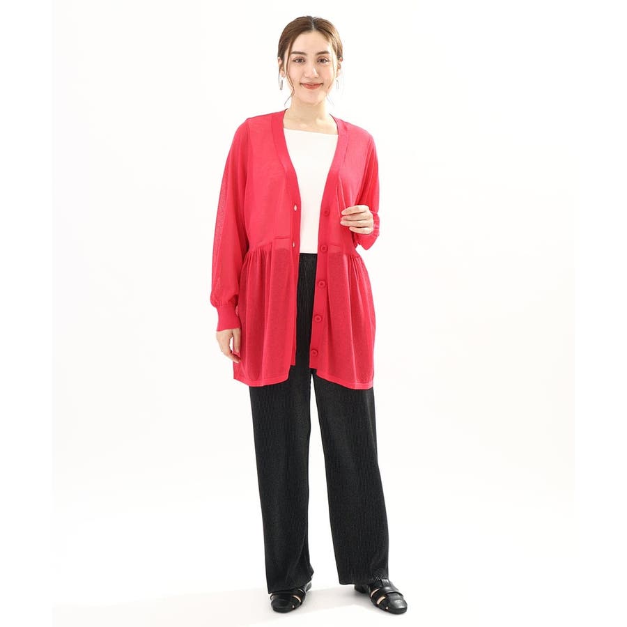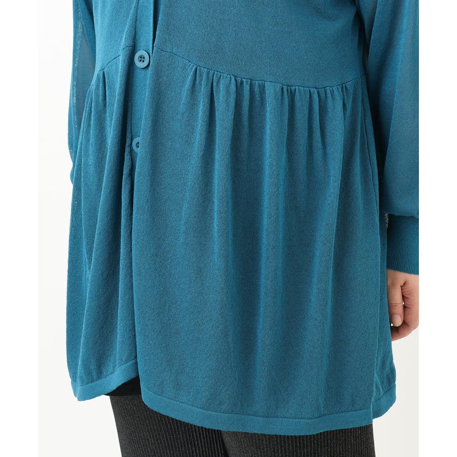 インナーにタンクトップを合わせてプルオーバーとしても、前を開けて羽織としても、ペプラムのギャザー感が女性らしく着こなせます。